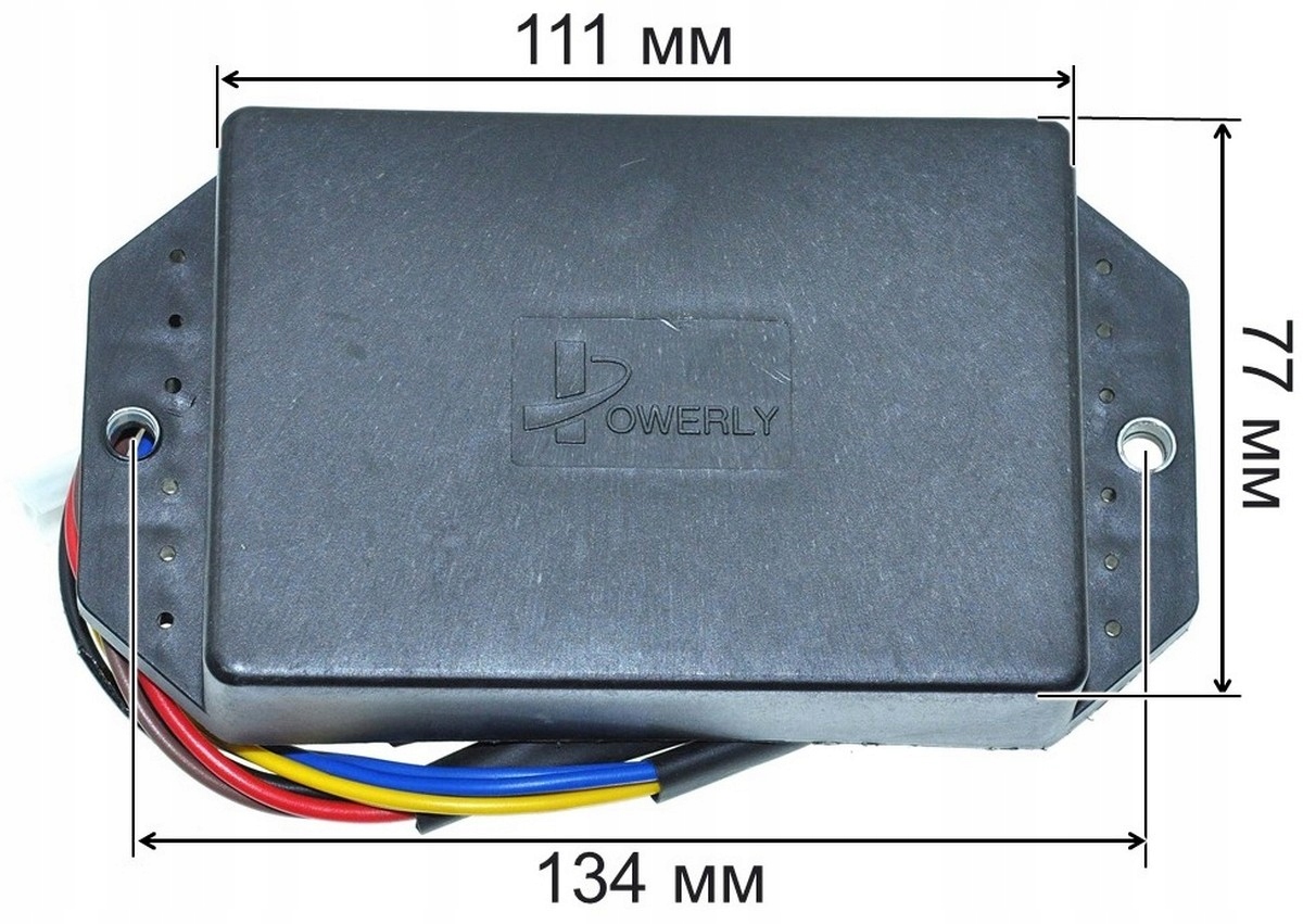 Automatyczny regulator napięcia (AVR) z kondensatorem 470 μF (220 V), wyposażony w 10 przewodów do pełnego podłączenia w układach jednofazowych. Zapewnia stabilne napięcie wyjściowe przy różnych poziomach obciążenia, chroniąc silnik i podłączone odbiorniki przed przepięciami.