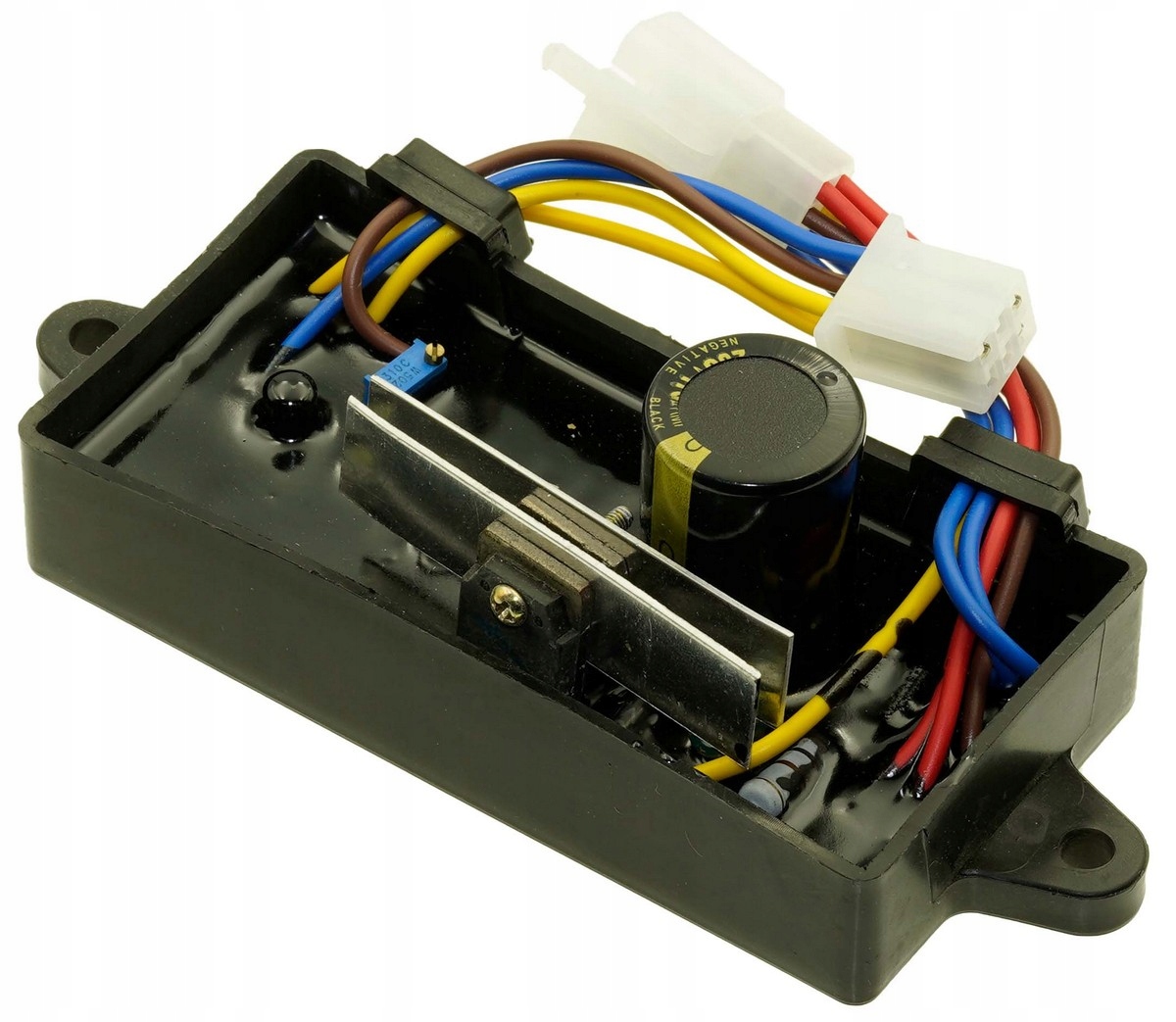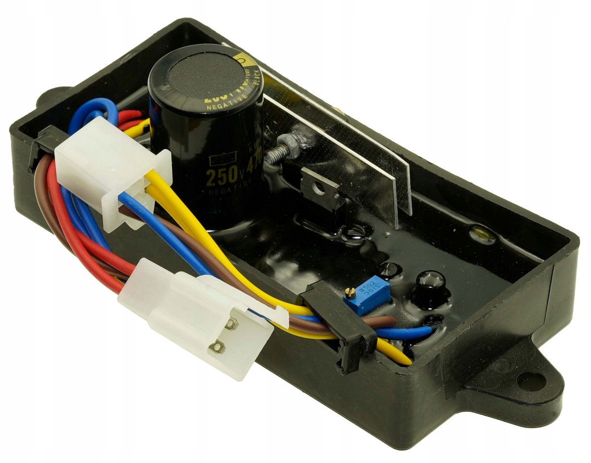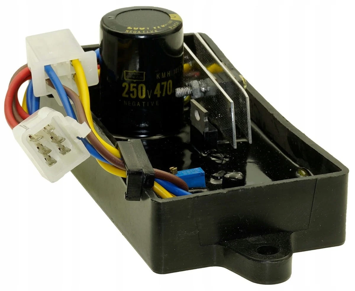 Regulator napięcia AVR stosowany w generatorach prądotwórczych. Idealny jako część wymienna podczas naprawy lub modernizacji urządzenia – zapewnia stabilną pracę oraz bezpieczeństwo podłączonego sprzętu.