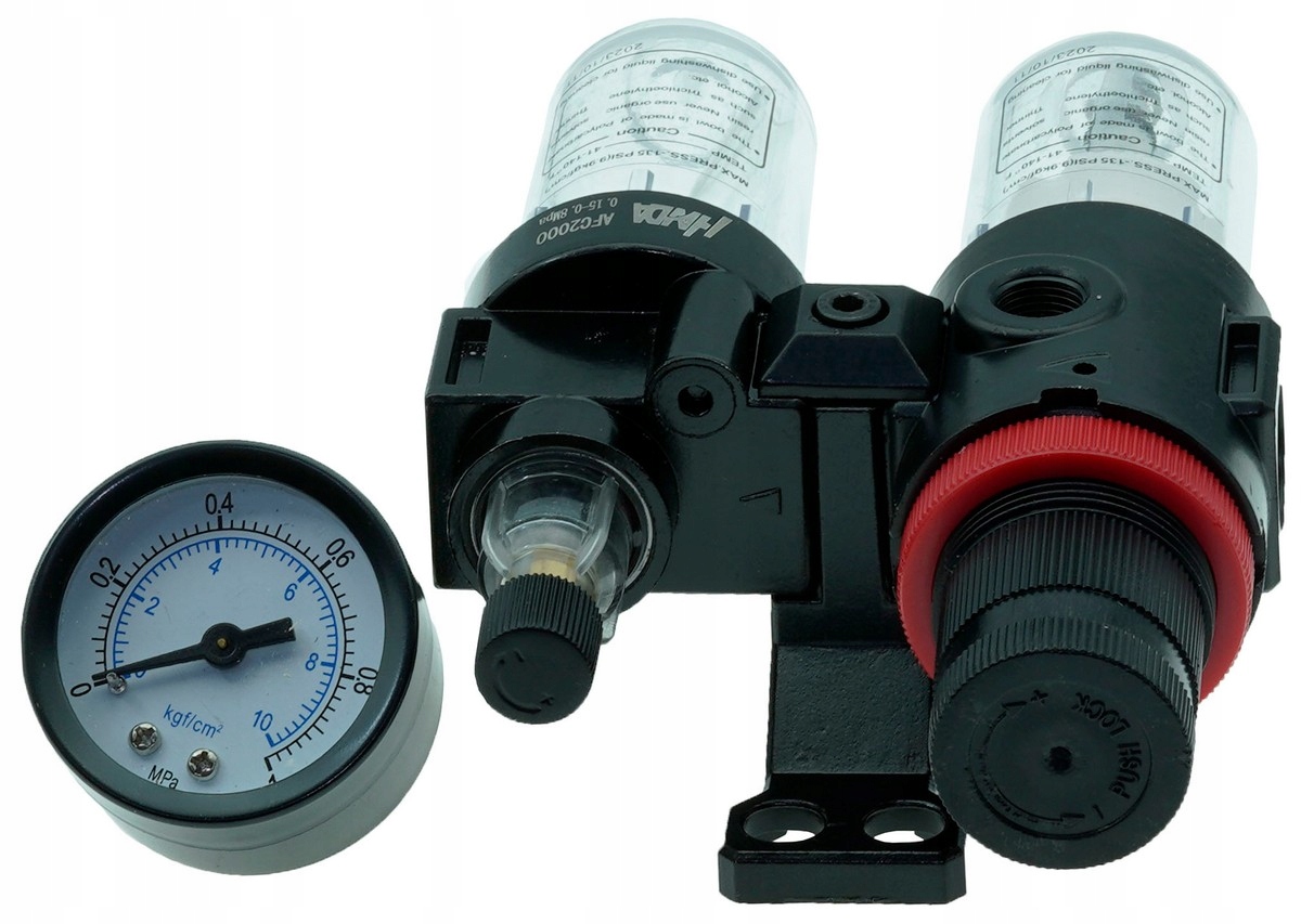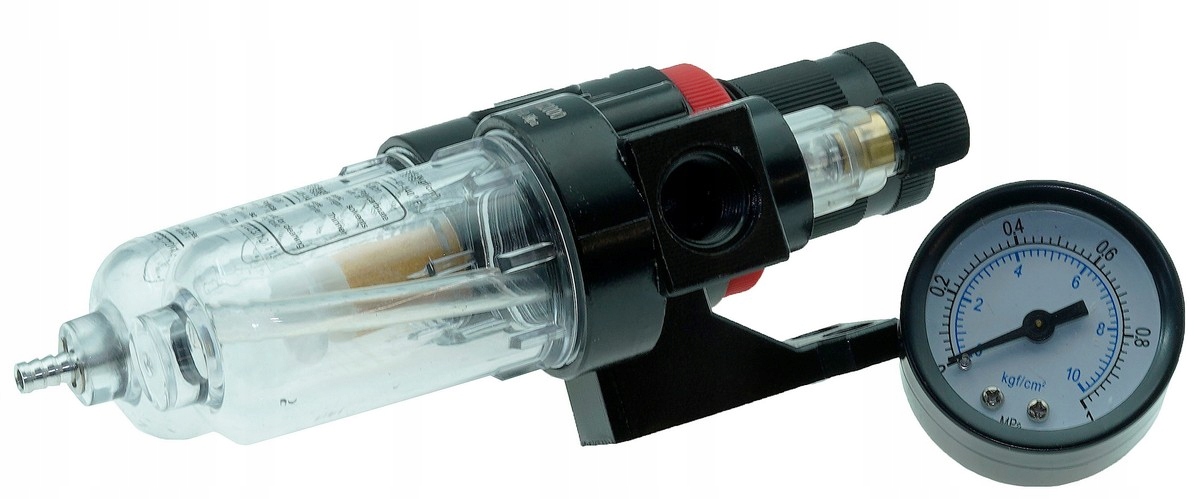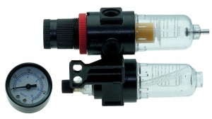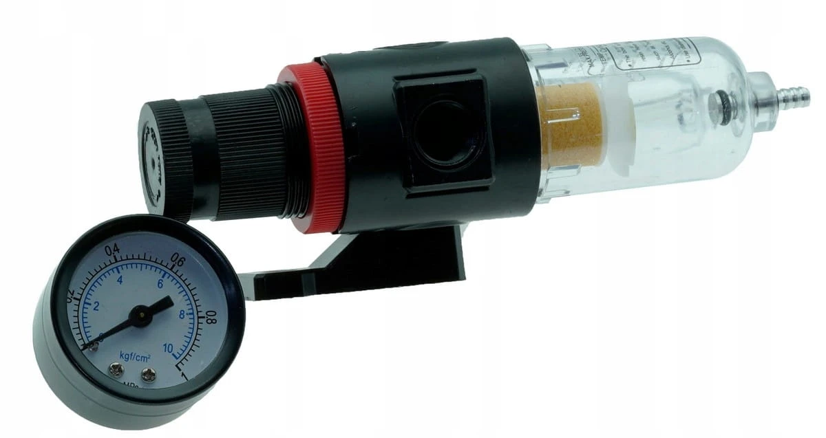 Zestaw typu FRL (filtr, reduktor, smarownica) stosowany w instalacjach pneumatycznych do poprawy jakości powietrza. Przeznaczony do narzędzi warsztatowych, kompresorów, pistoletów lakierniczych i linii produkcyjnych.
