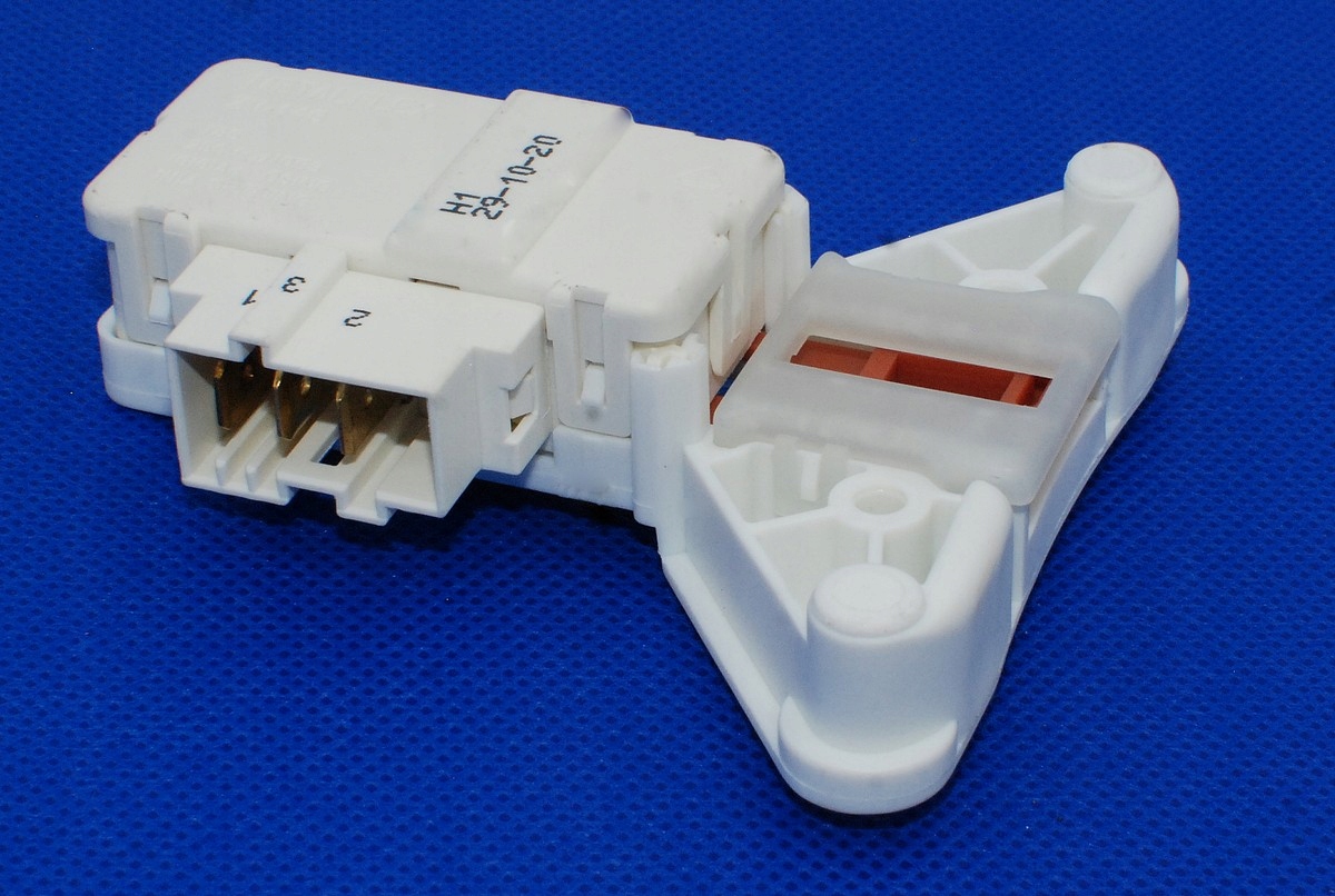 Blokada drzwi pralki przeznaczona do modeli z bocznym załadunkiem. Odpowiada za zabezpieczenie drzwi podczas pracy urządzenia, uniemożliwiając ich przypadkowe otwarcie w trakcie cyklu prania. Wykonana z trwałych materiałów, odpornych na zużycie i wysoką temperaturę, zapewnia niezawodne działanie i długą żywotność pralki.