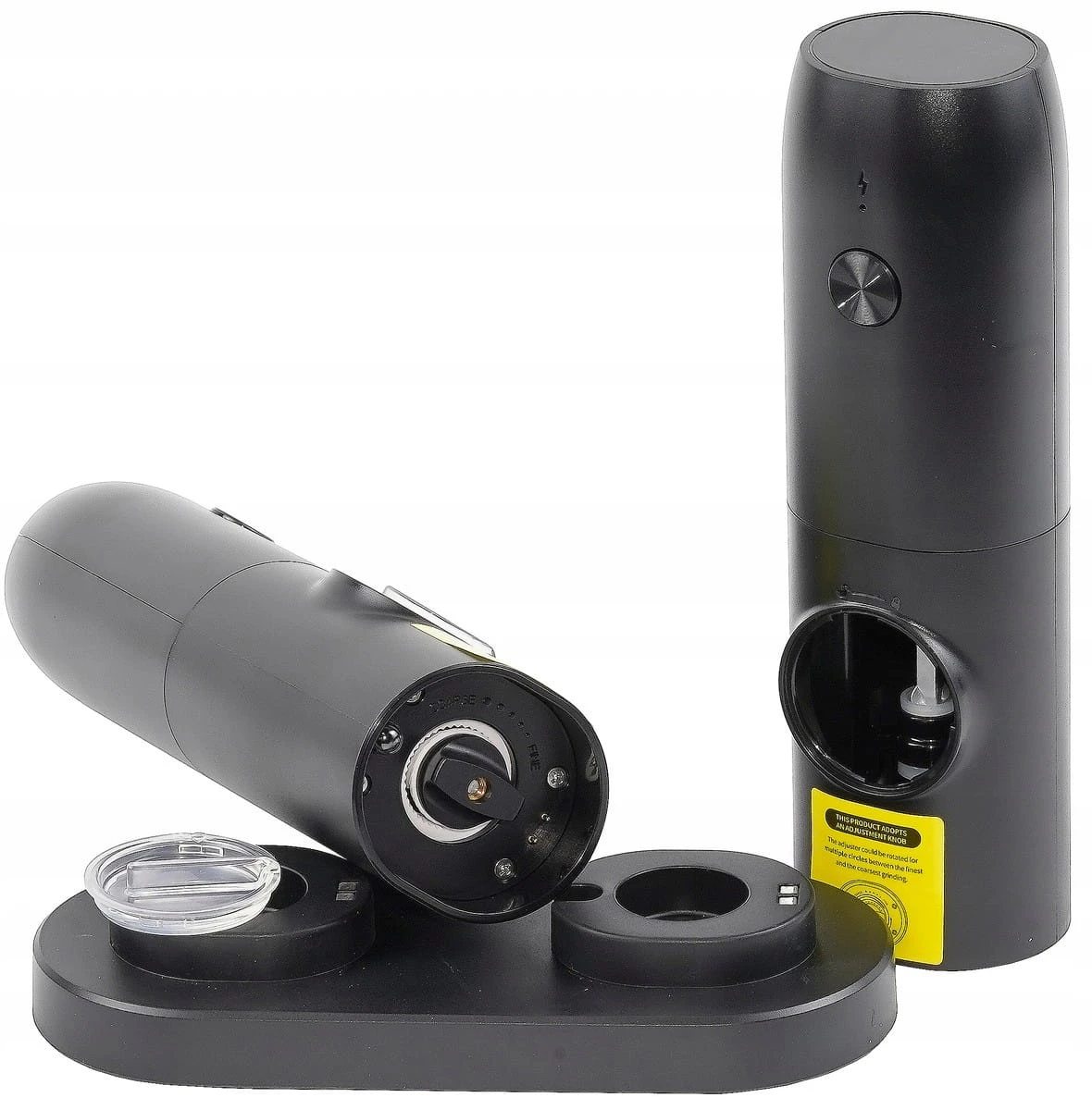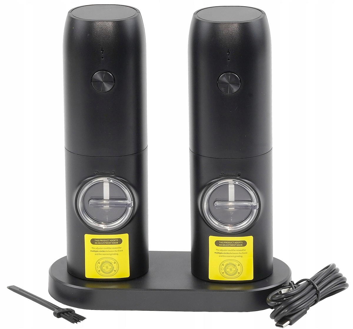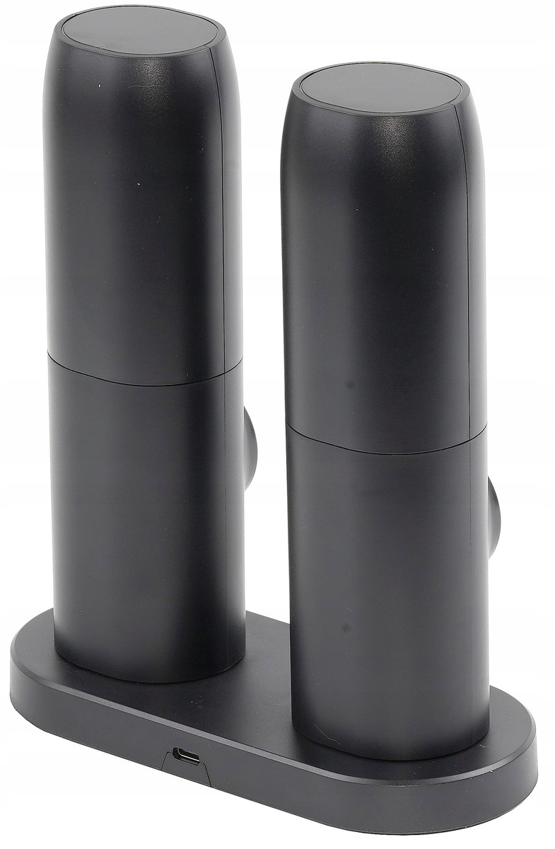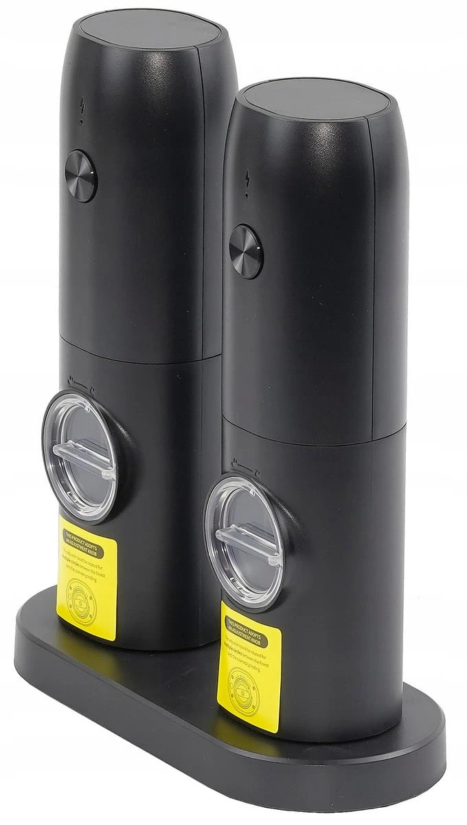 Opis produktu: Przedstawiamy zestaw dwóch nowoczesnych elektrycznych młynków do soli i pieprzu, charakteryzujących się elegancką matową obudową oraz wskaźnikiem LED. Te młynki zostały zaprojektowane z myślą o wygodzie użytkowania i estetyce, idealnie komponując się z nowoczesnymi wnętrzami kuchennymi.