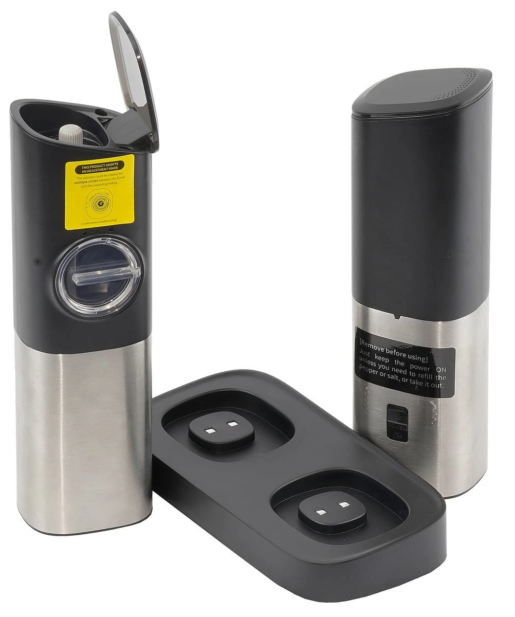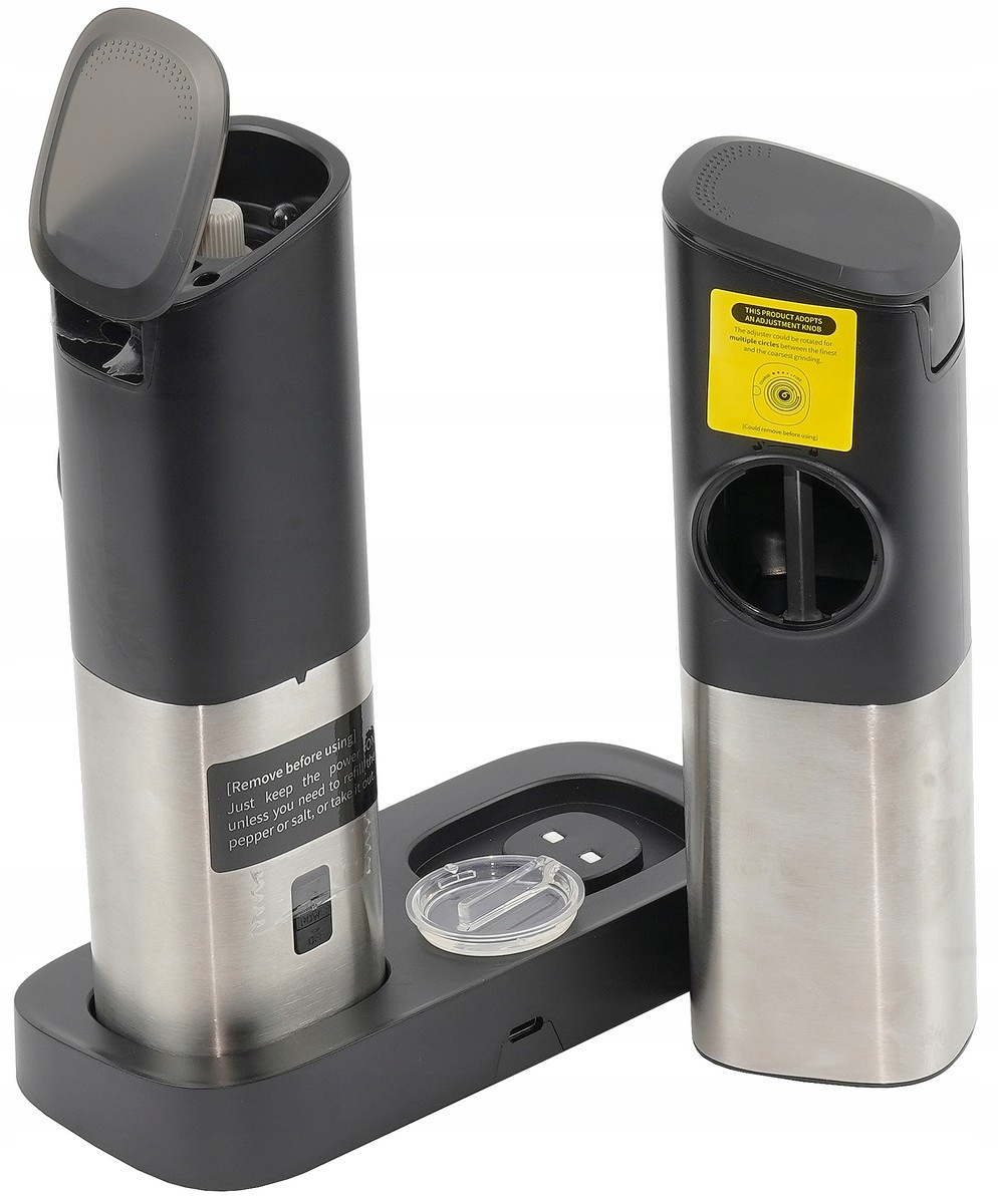Opis produktu: Przedstawiamy nowoczesny zestaw dwóch elektrycznych młynków do soli i pieprzu, wyposażonych w czujnik grawitacyjny oraz port ładowania USB typu C. Dzięki funkcji automatycznego mielenia po przechyleniu, użytkowanie staje się niezwykle wygodne i intuicyjne.