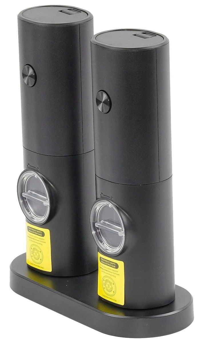 Opis produktu: Przedstawiamy zestaw dwóch nowoczesnych elektrycznych młynków do soli i pieprzu, charakteryzujących się elegancką matową obudową oraz funkcjonalnym podświetleniem LED. Te młynki zostały zaprojektowane z myślą o wygodzie użytkowania i estetyce, idealnie komponując się z nowoczesnymi wnętrzami kuchennymi.