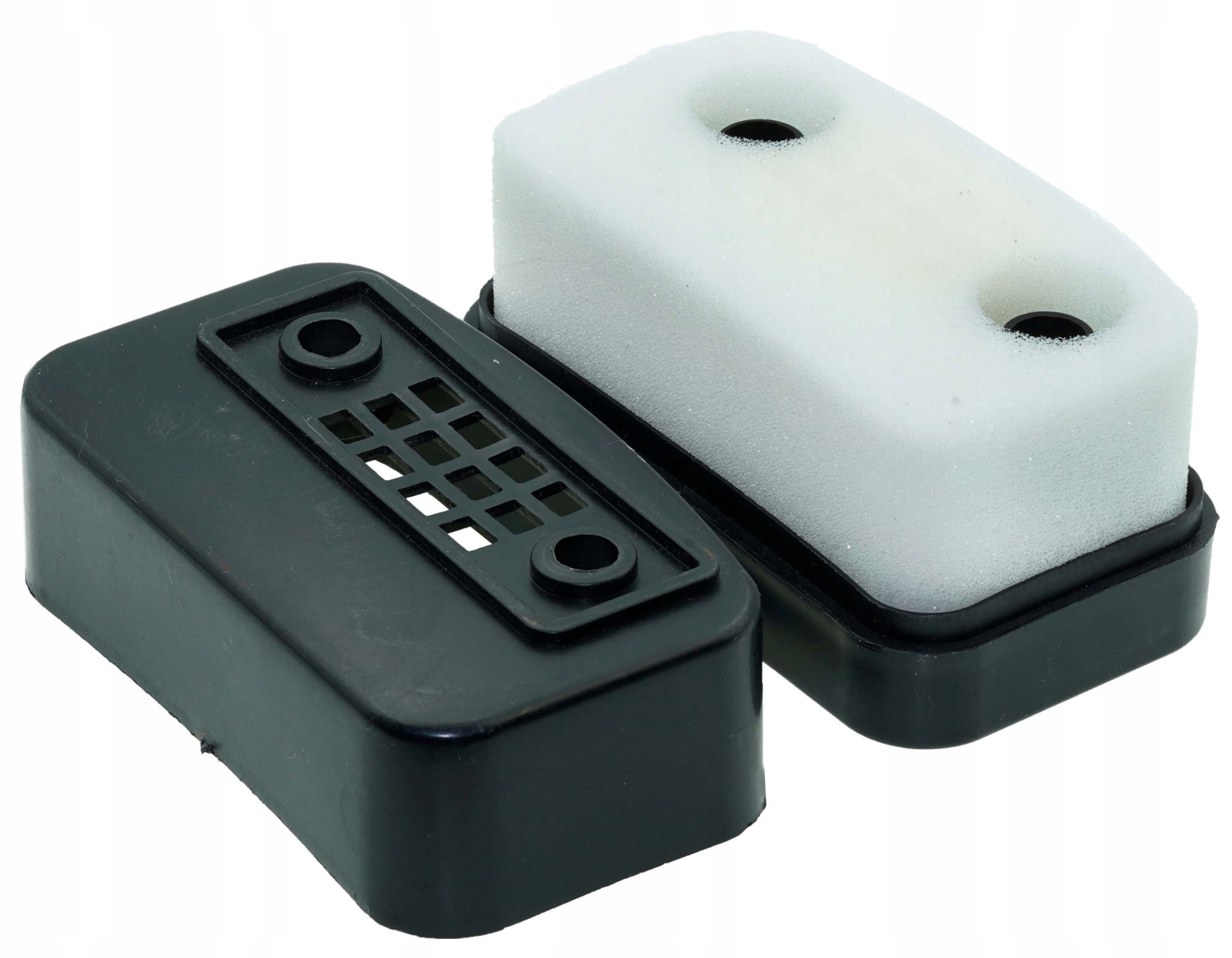 Filtr powietrza w plastikowej obudowie służy do wstępnego oczyszczania powietrza zasysanego przez kompresor. Chroni wnętrze sprężarki przed zabrudzeniami, zwiększa żywotność silnika i poprawia wydajność układu.