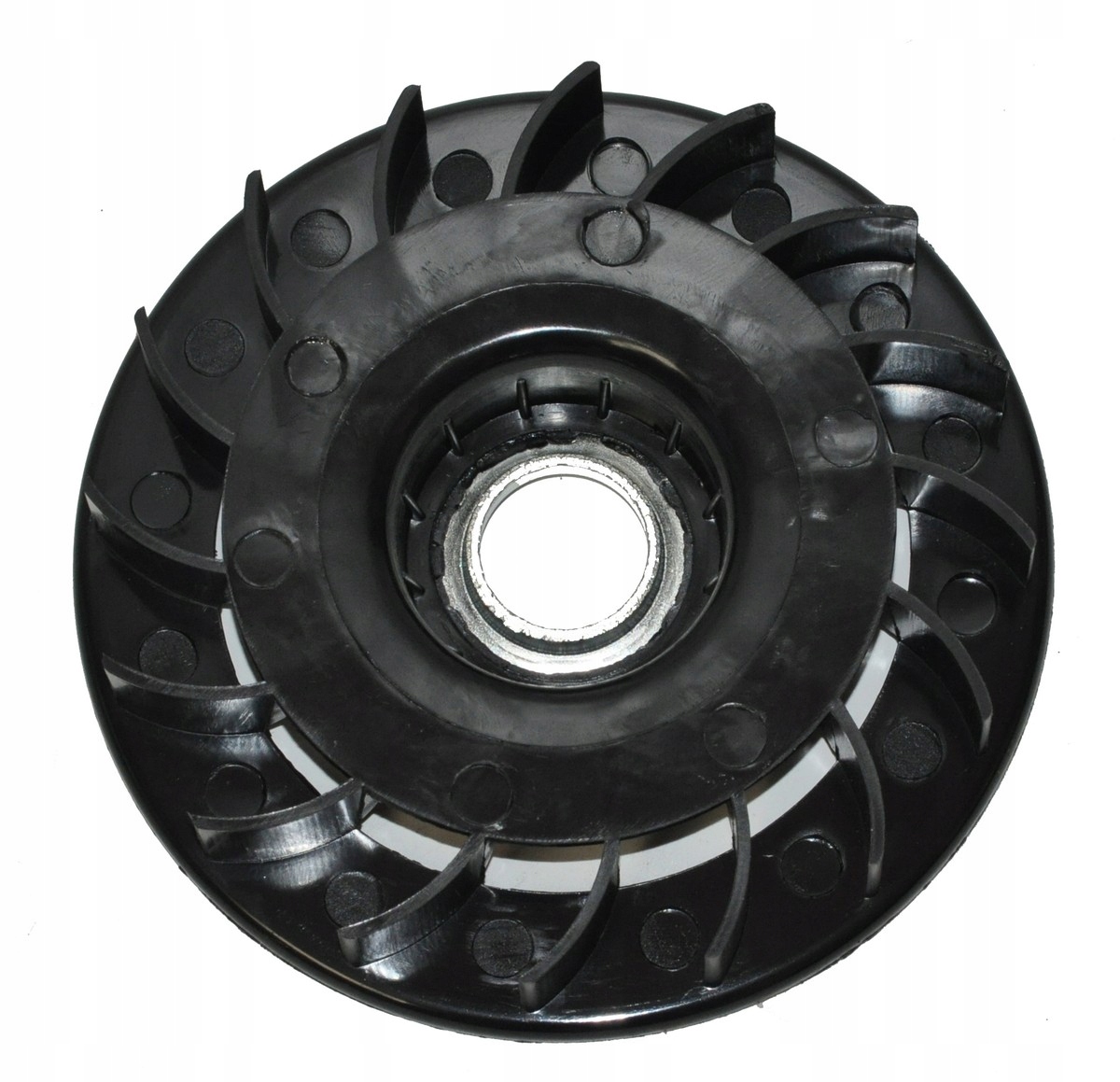 Koło zamachowe stosowane w agregatach prądotwórczych z silnikiem benzynowym 168F o mocy 5,5 KM.