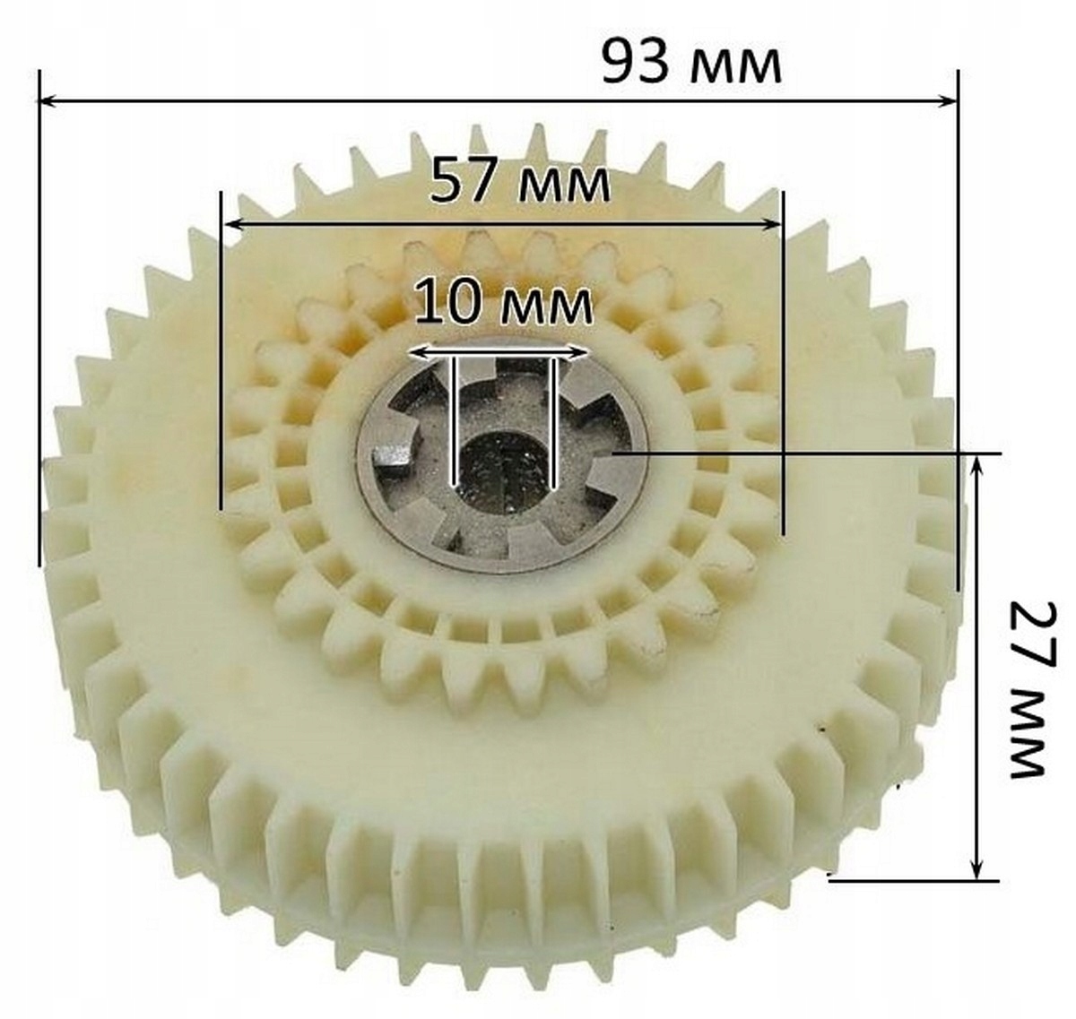 - Precyzyjne dopasowanie – średnica wewnętrzna 10 mm, zewnętrzna 93 mm oraz 44 zęby wewnętrzne zapewniają płynne przenoszenie napędu.