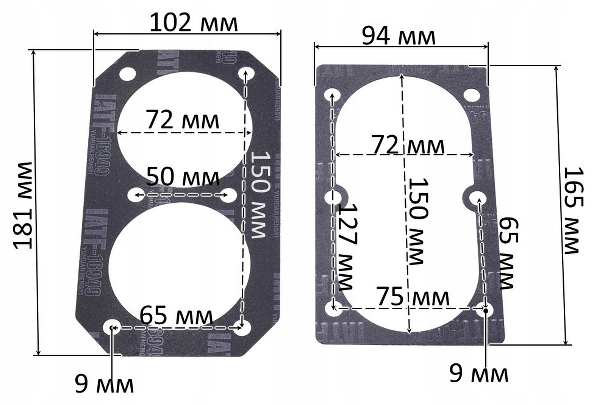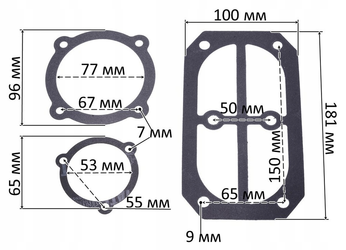 Komplet uszczelek do sprężarki 7 szt. między środkami 50×64×147 mm