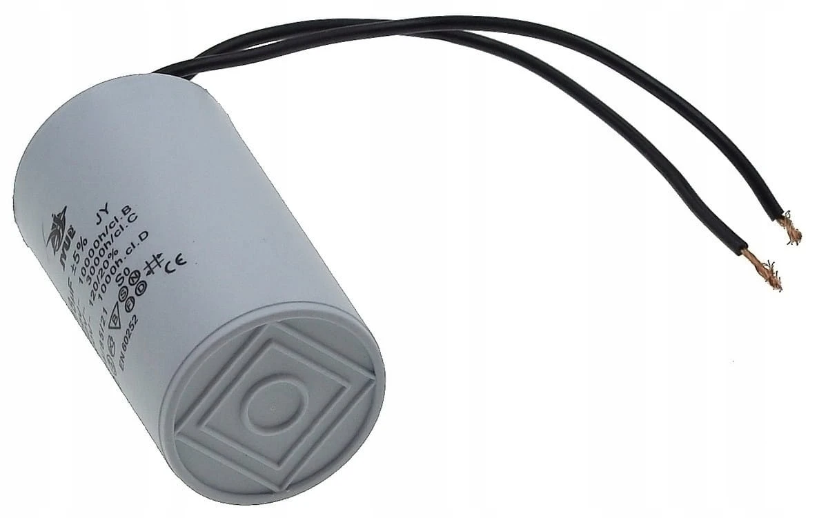 Kondensator rozruchowy JYUL o pojemności 16 µF i napięciu znamionowym 450 VAC. Wyposażony w przewody o długości 40/72 mm, co ułatwia instalację. Idealny do zastosowań w silnikach elektrycznych oraz innych urządzeniach wymagających wsparcia przy rozruchu.