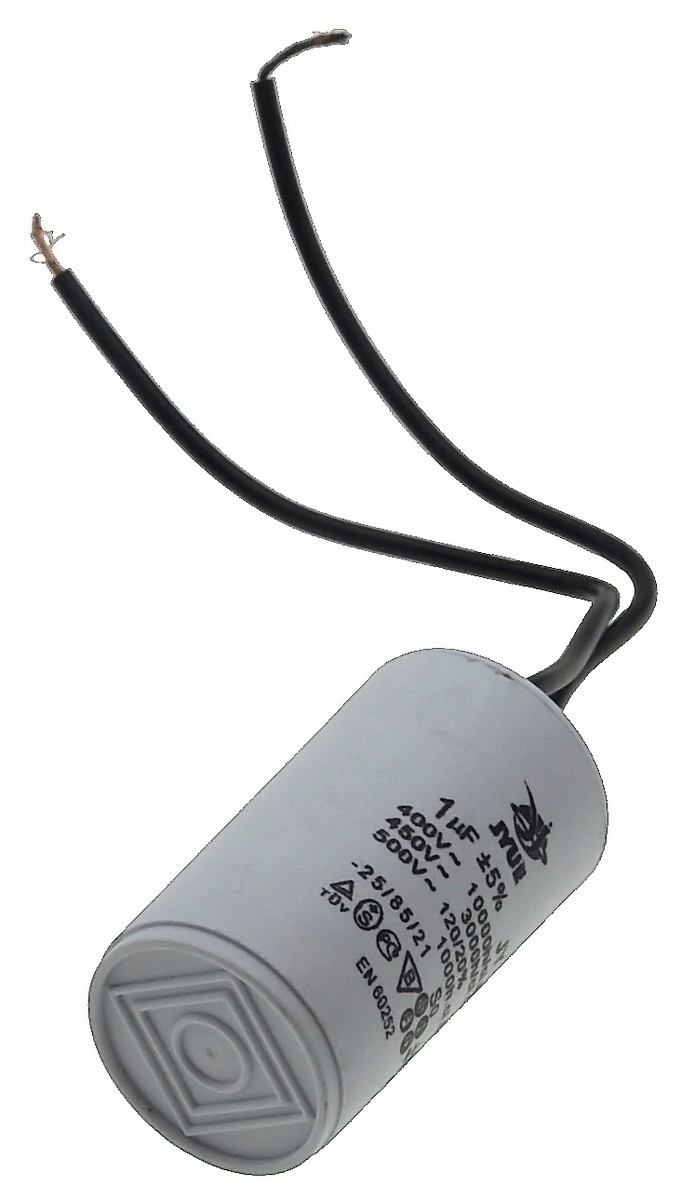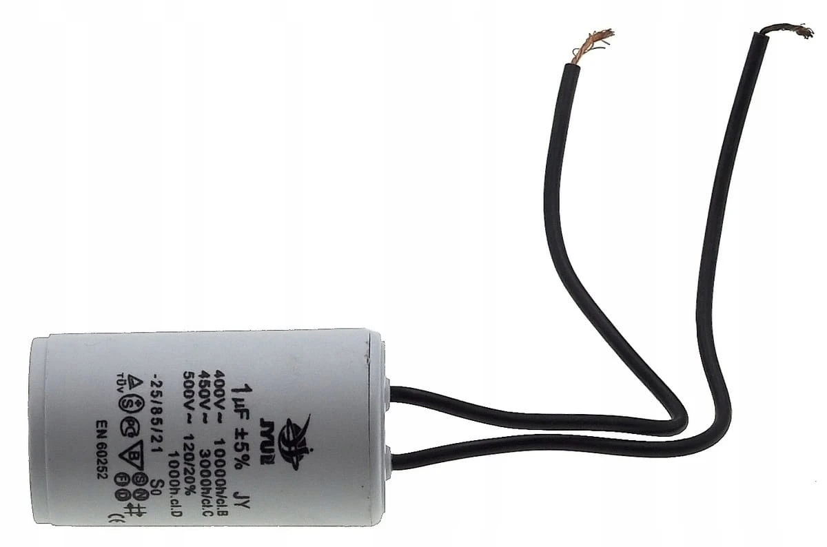 Kondensator silnikowy JYUL 1µF 450 VAC z przewodami 30/53mm