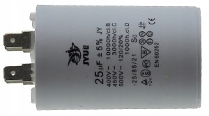 Kondensator silnikowy JYUL 25µF 450VAC 45/70mm z zaciskami