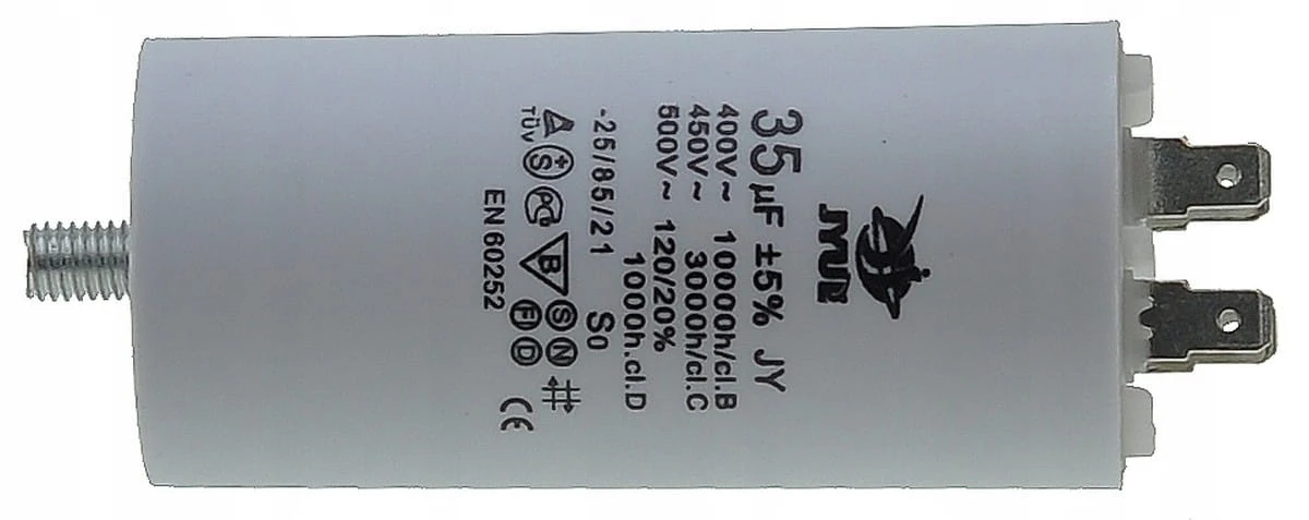 Kondensator silnikowy JYUL 35µF 450VAC 45/95mm z konektorami