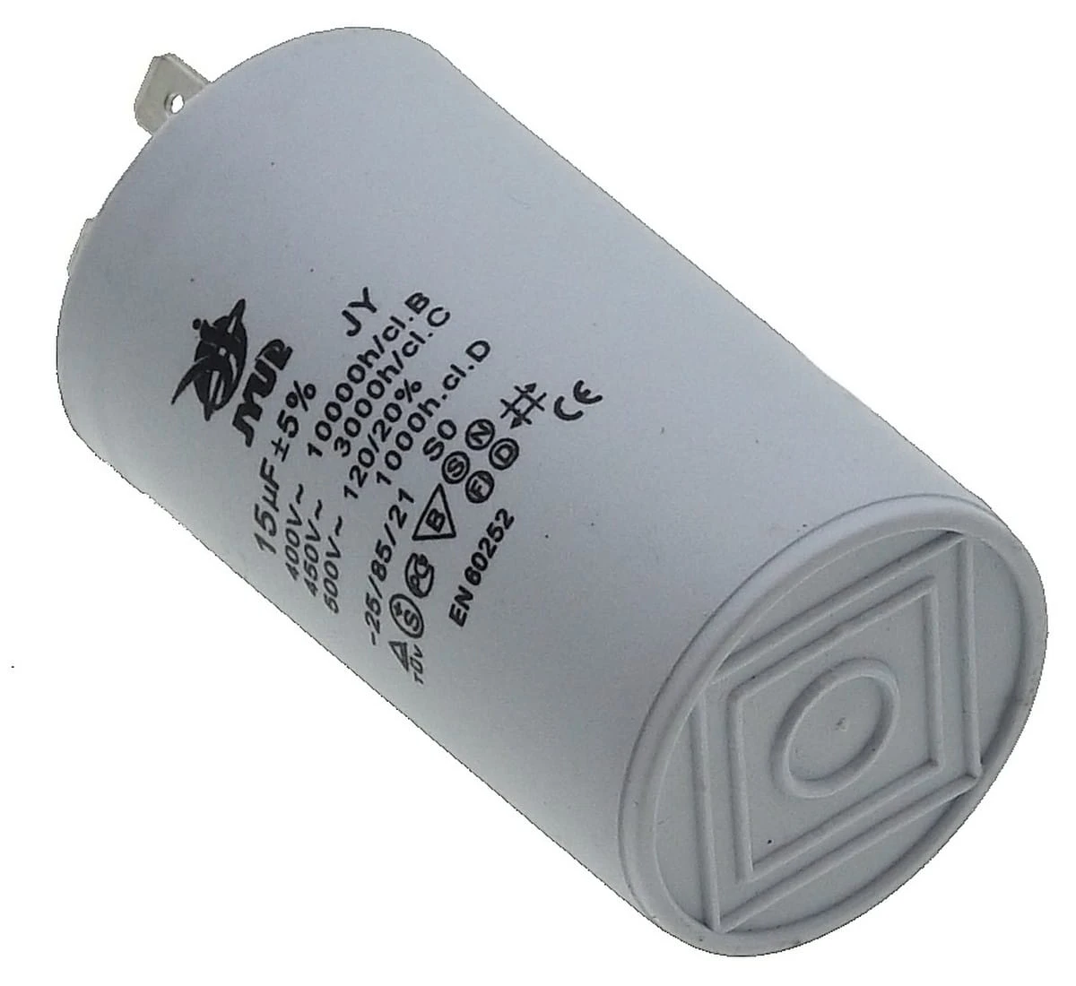 Kondensator silnikowy JYUL CBB-60H 15µF 450V AC – konektor 40×70 mm