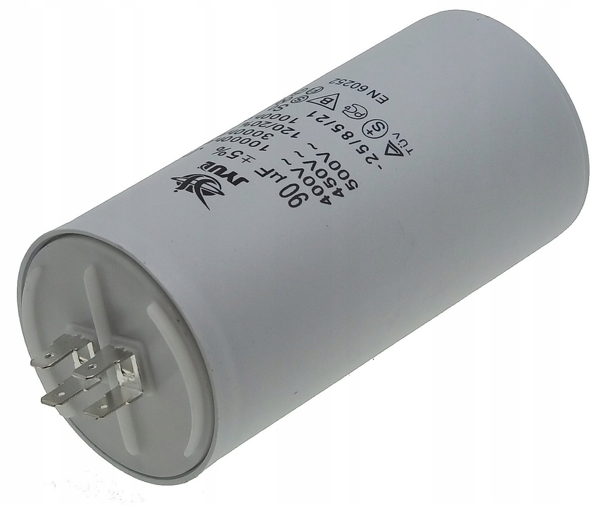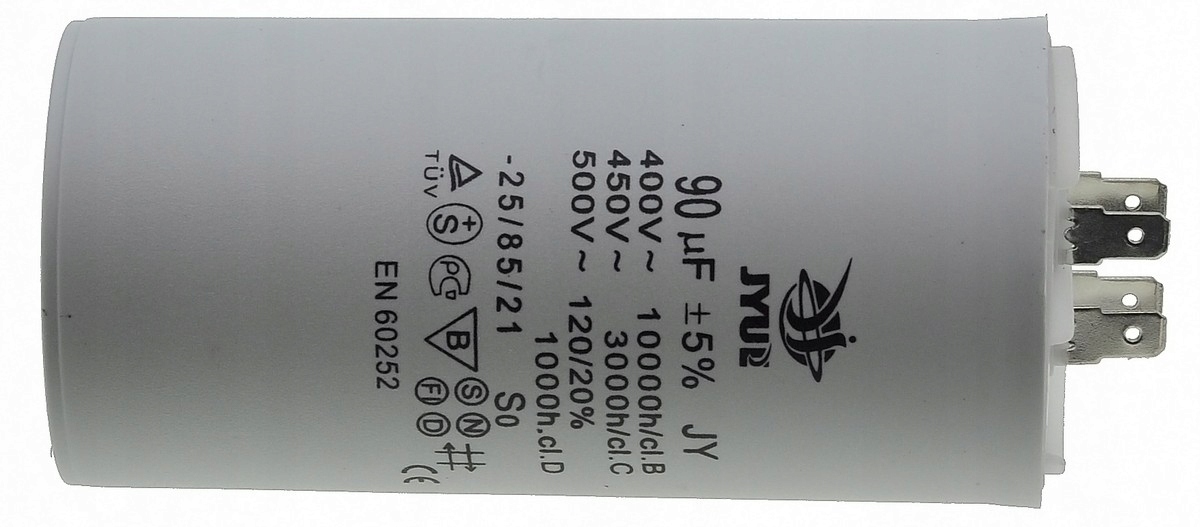 Kondensator silnikowy JYUL CBB-60H 90 µF 450 VAC 59/121mm z konektorami
