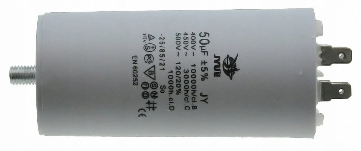 Kondensator silnikowy JYUL JYUL 50µF 450VAC 50/107mm z konektorami