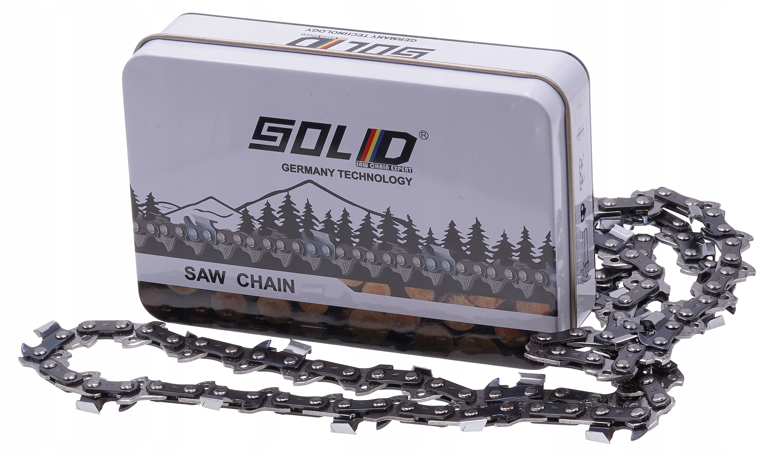 Solidny łańcuch tnący marki Solid, wyposażony w 57 ogniw i 28,5 zęba, zaprojektowany do zastosowań wymagających cięcia twardego drewna. Krok 3/8 cala i szerokość paska (pazu) 1,3 mm zapewniają doskonałą kompatybilność z większością prowadnic i pilarek. Jego konstrukcja i materiały gwarantują długowieczność i efektywność nawet w najbardziej wymagających warunkach.