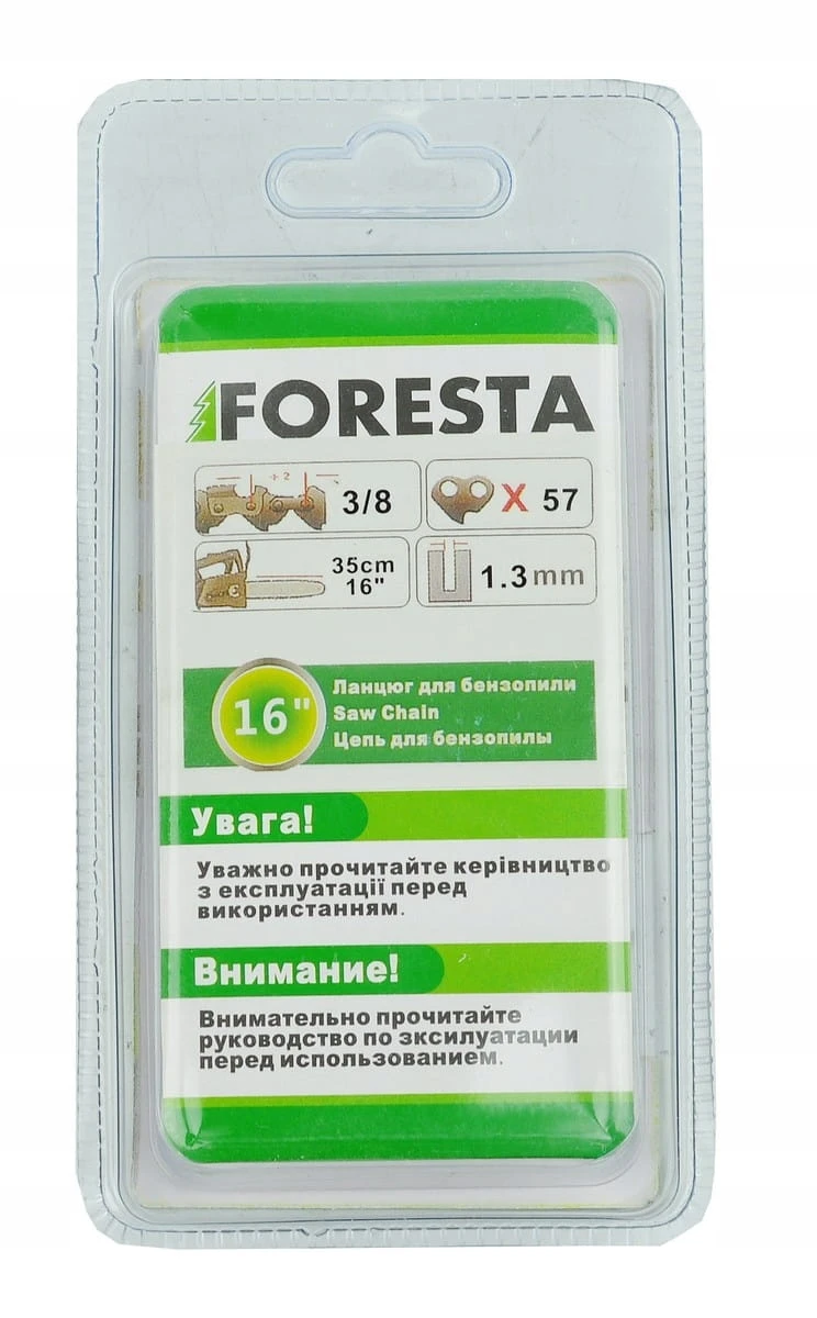 Łańcuch tnący Foresta o podziałce 3/8", szerokości rowka 1,3 mm i 57 ogniwach to wysokiej jakości komponent przeznaczony głównie do elektrycznych pilarek łańcuchowych. Dzięki solidnej konstrukcji i precyzyjnym zębom tnącym zapewnia efektywne i dokładne cięcie. Łańcuch jest odpowiedni do pracy z różnymi gatunkami drewna, zarówno miękkimi, jak i twardymi.