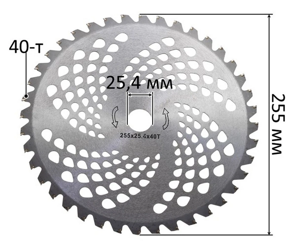 Nóż do podkaszarki z węglikiem spiekanym 255×40-T, lekki („kropla”).