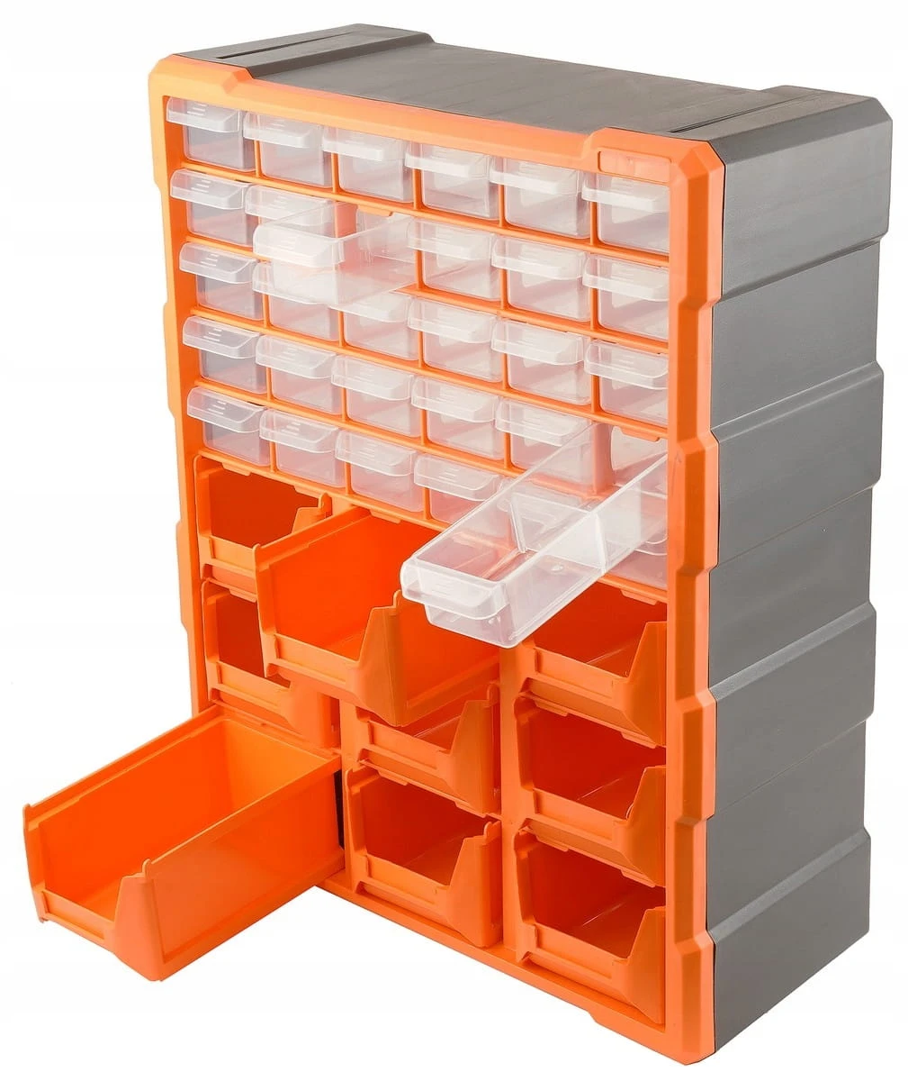- Typ: organizer pionowy na 39 elementów (30 szufladek + 9 kontenerów)