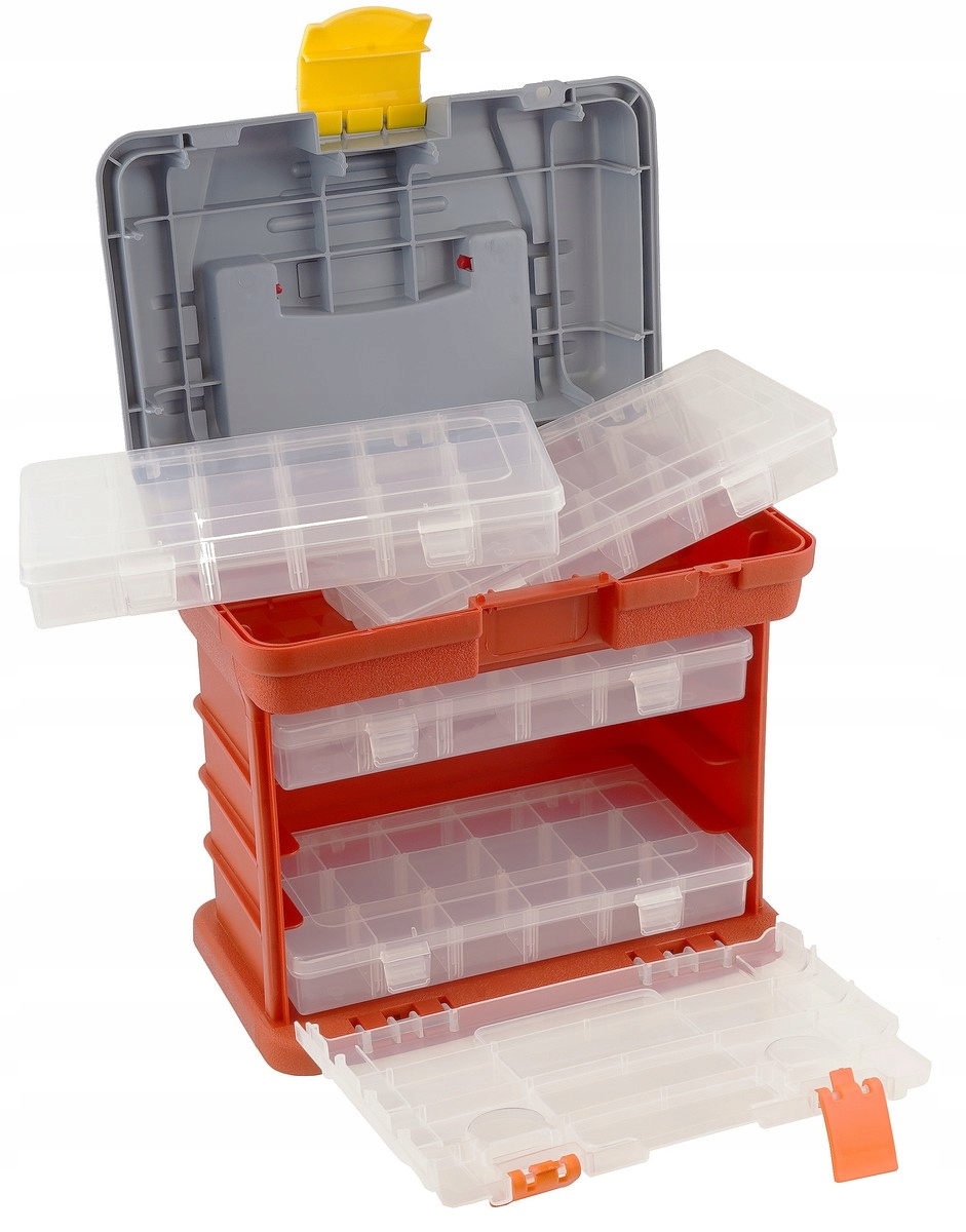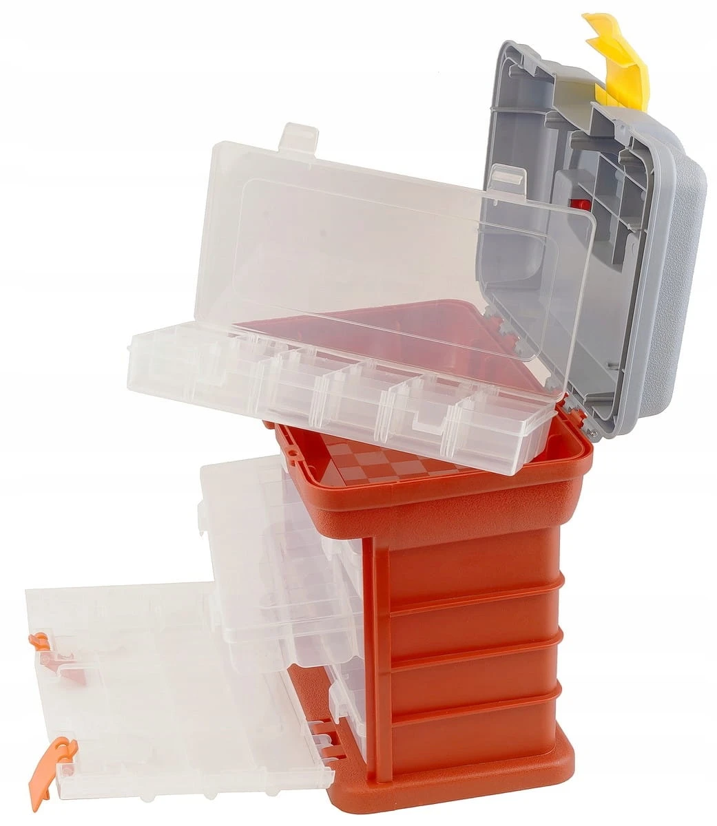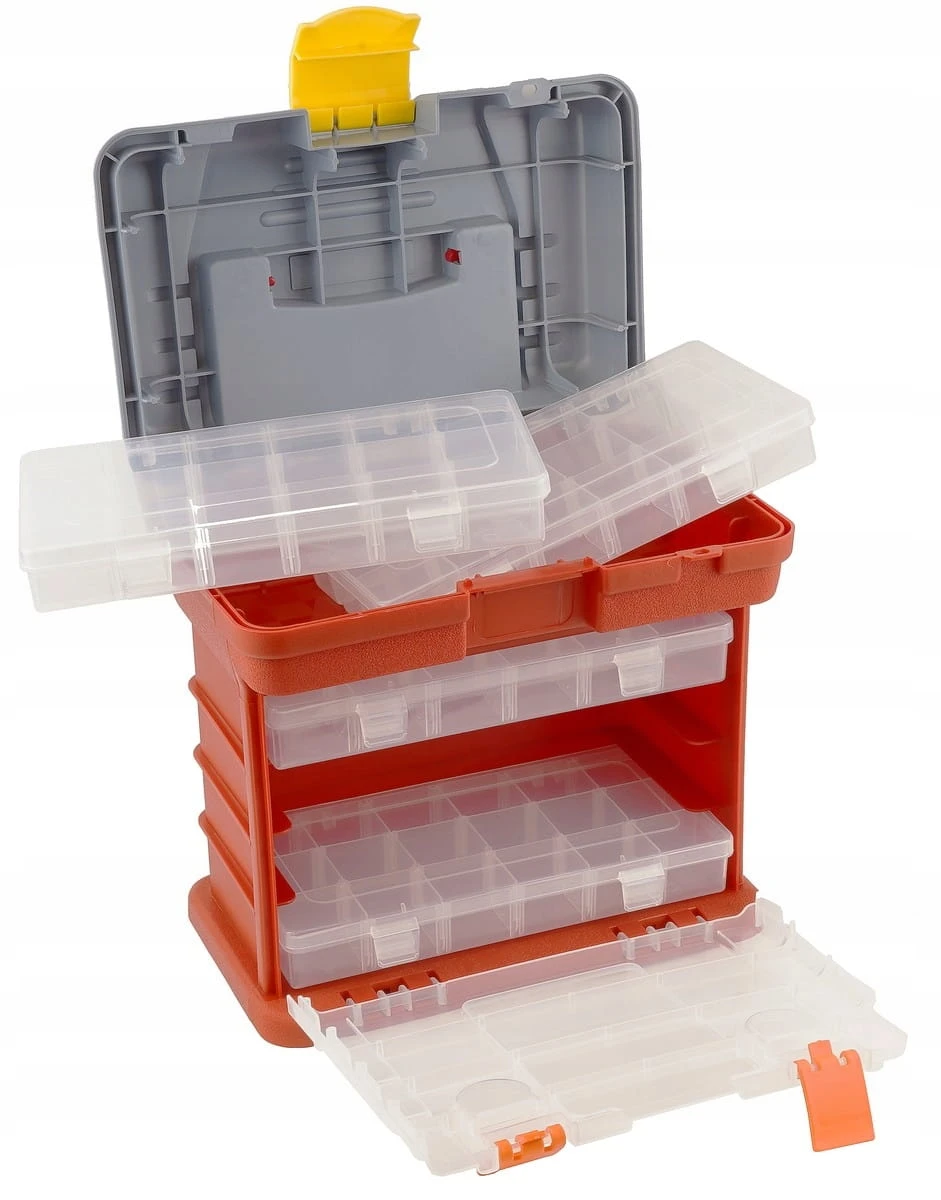 Idealny do organizacji małych części: śrub, nakrętek, biurowych akcesoriów, gwoździ czy zbieranych drobiazgów w domowym warsztacie lub przestrzeni do pracy.