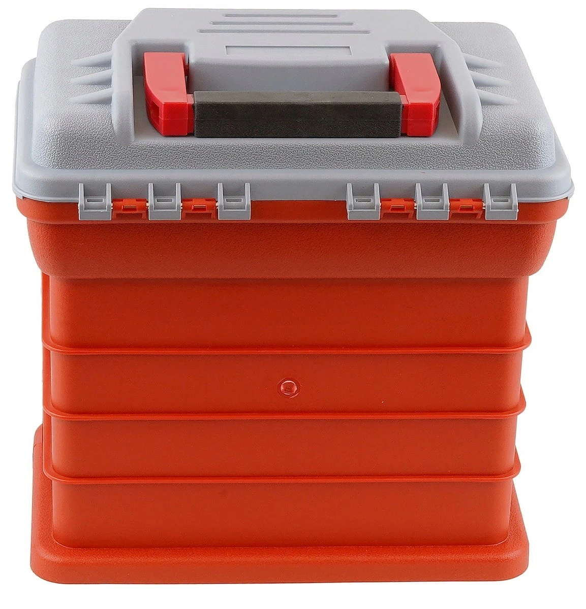 - Sześć przegródek — idealny do segregacji drobnych przedmiotów, biurowych akcesoriów lub części warsztatowych.