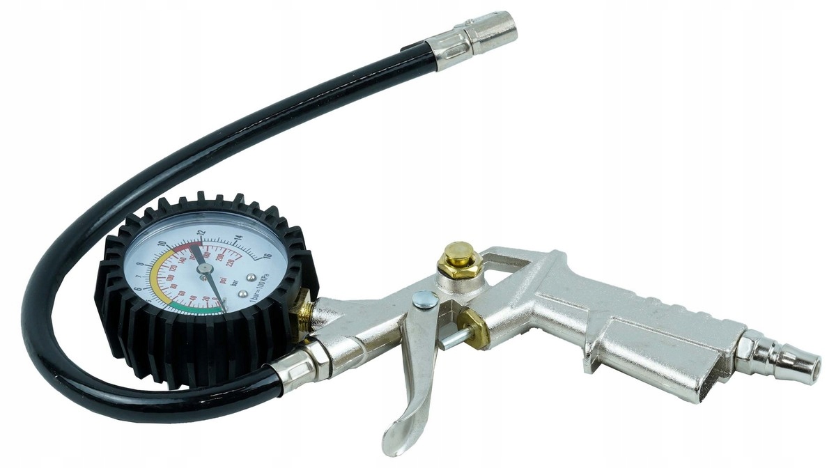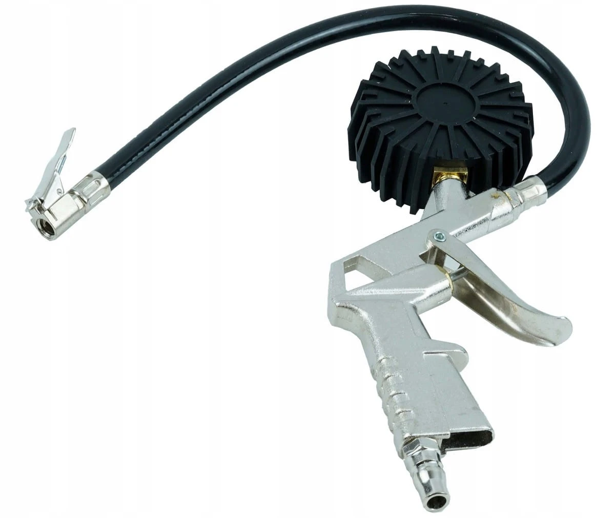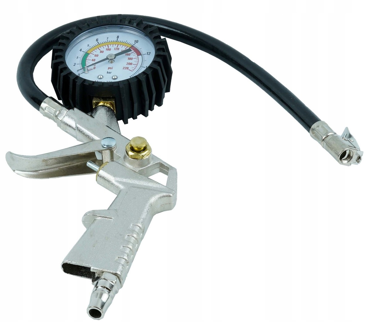 Pistolet pneumatyczny z manometrem 63 mm idealny do użytku w warsztatach i serwisach. Umożliwia szybkie pompowanie i dokładne monitorowanie ciśnienia w oponach.