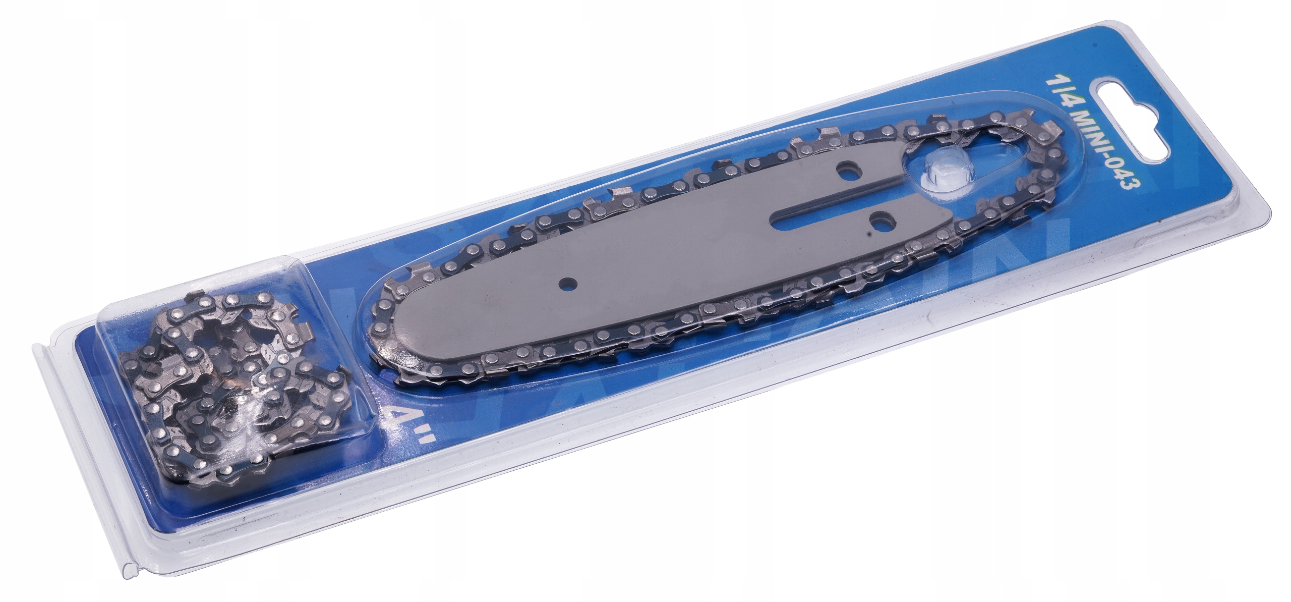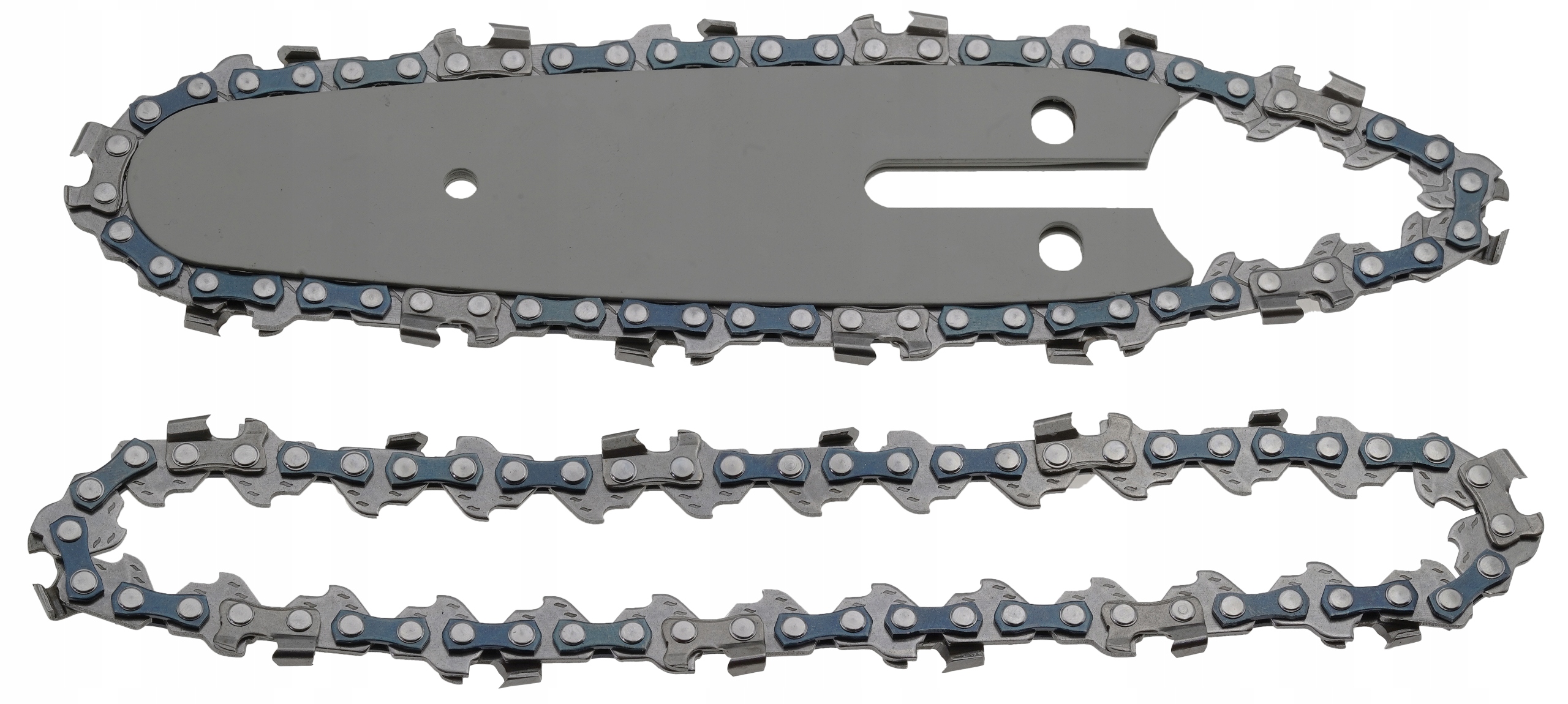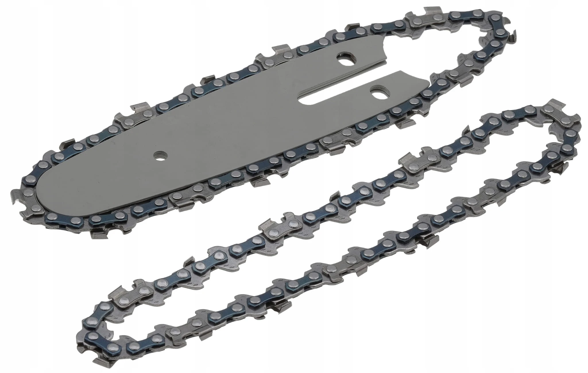 Kompaktowy zestaw składający się z prowadnicy o długości 4 cali (100 mm) oraz dwóch łańcuchów tnących, każdy z 28 ogniwami. Krok łańcucha wynosi 1/4 cala, a szerokość paska to 1,1 mm. Idealny do przenośnych i lekkich narzędzi ogrodniczych, takich jak podkaszarki z funkcją piły — zapewnia precyzyjne, bezpieczne cięcie w ciasnych przestrzeniach.