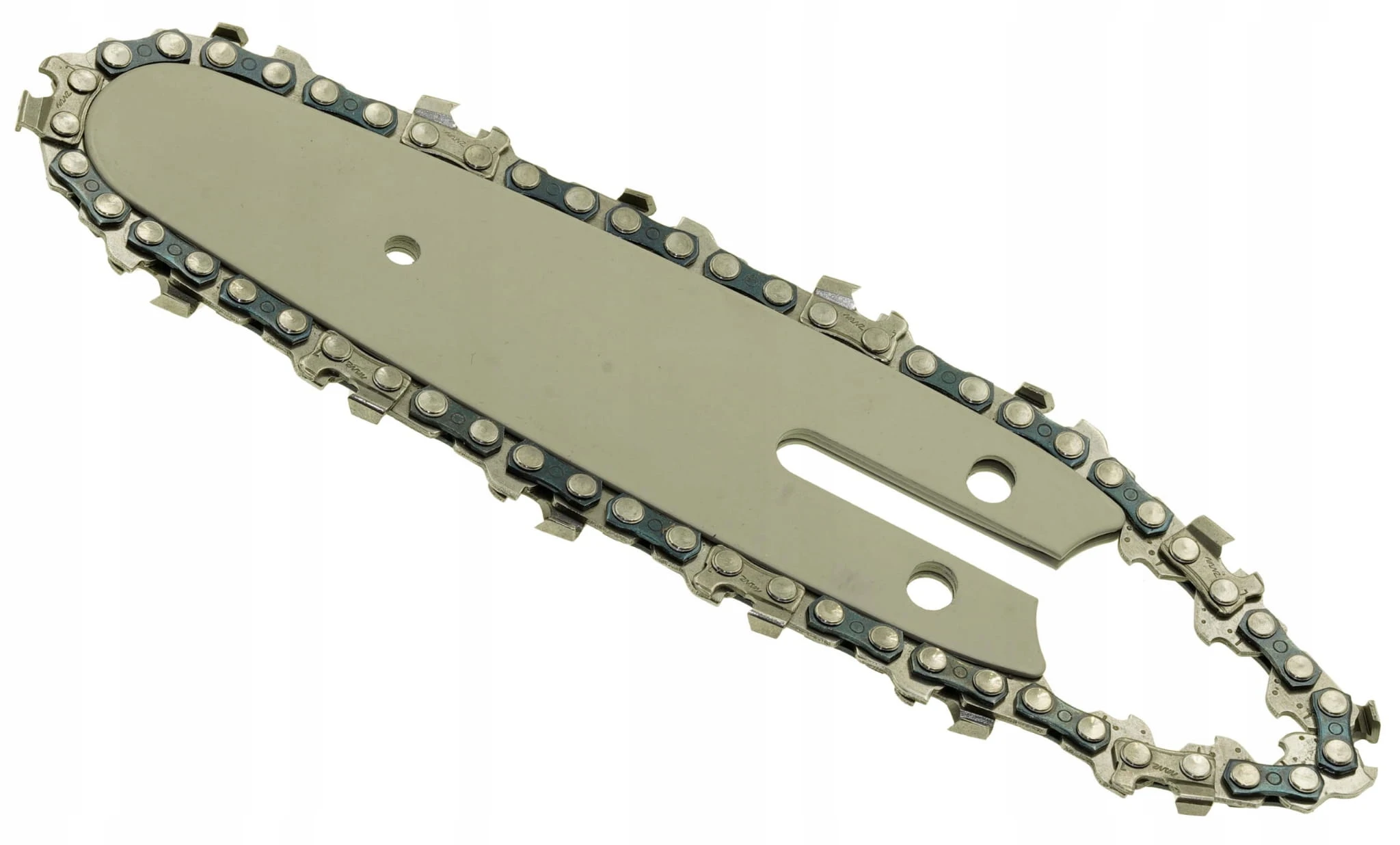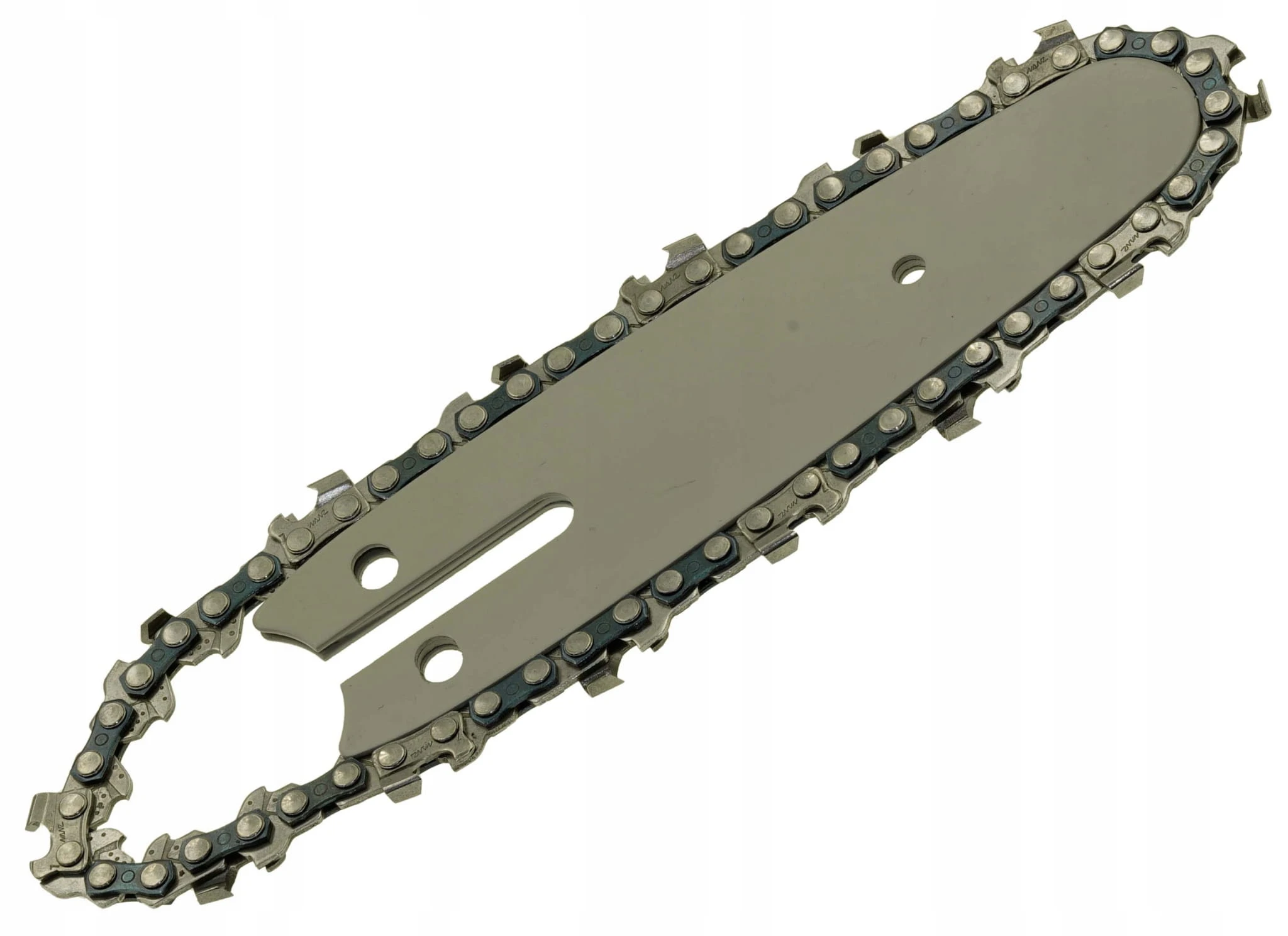 Zestaw zawiera krótką prowadnicę o długości 4 cali (10 cm) oraz pasujący do niej łańcuch z 28 ogniwami i 14 zębami. Krok 1/4 cala i szerokość paska (pazu) 1,1 mm zapewniają precyzyjne i sprawne cięcie. Dzięki kompaktowym wymiarom zestaw idealnie nadaje się do podkaszarek i urządzeń krzewonoszących, oferując wygodę użytkowania i wytrzymałość.