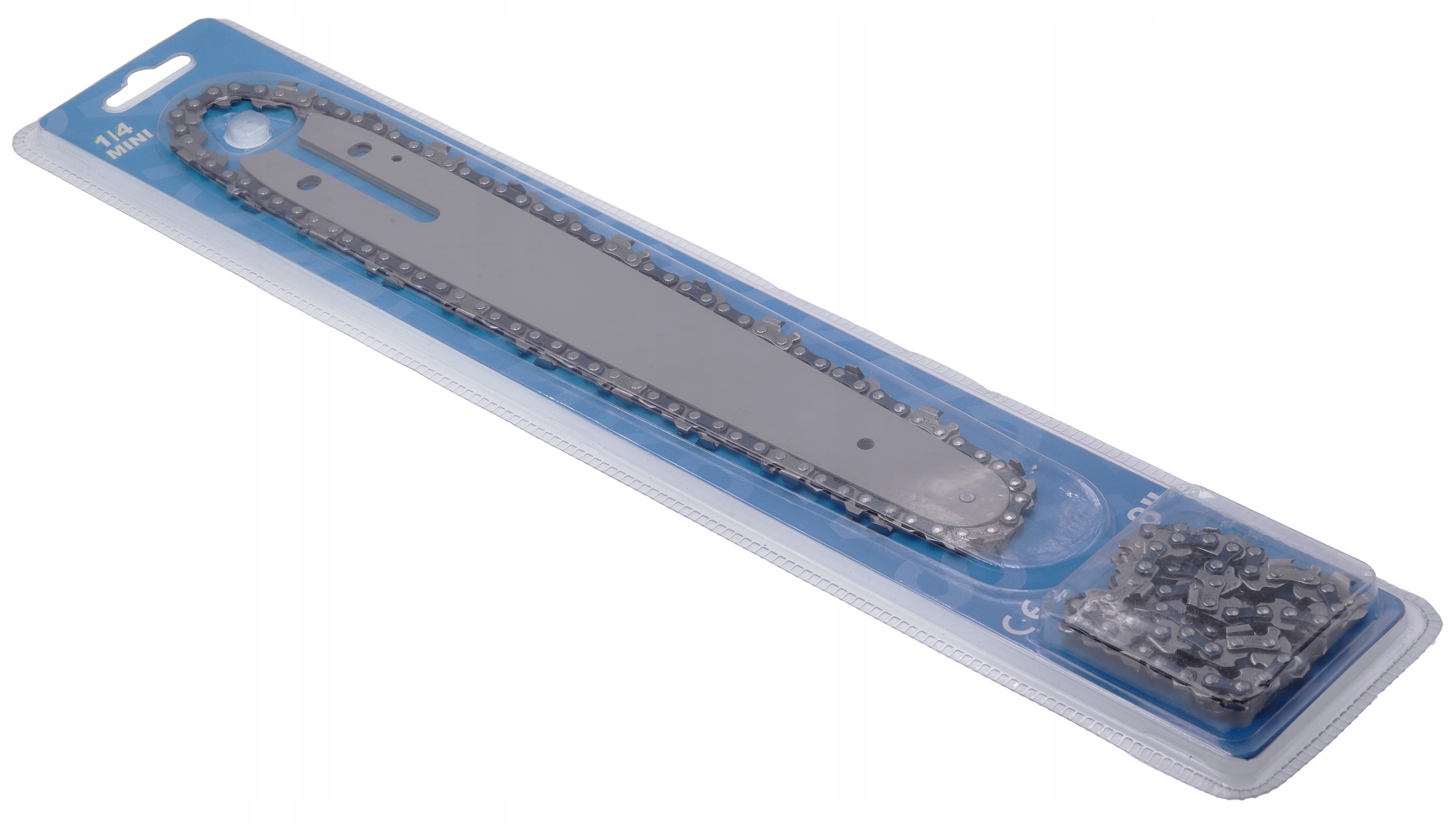 Zestaw składający się z prowadnicy o długości 8 cali (220 мм) oraz dwóch łańcuchów tnących po 45 ogniw każdy. Krok łańcucha wynosi 1/4 cala, a szerokość paska (pazu) to 1,1 мм. Dedykowany do pilarek łańcuchowych zasilanych akumulatorowo, zapewnia precyzyjne i wydajne cięcie przy zachowaniu kompaktowych rozmiarów.