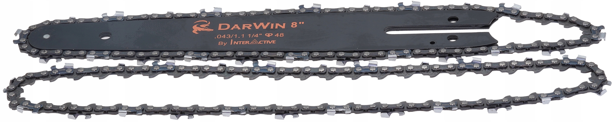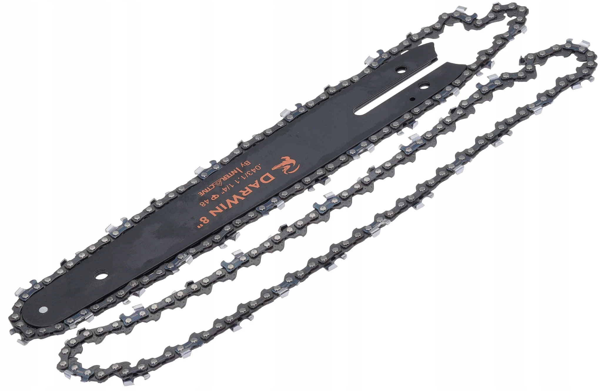 Zestaw składający się z prowadnicy o długości 8 cali (200 mm) oraz dwóch łańcuchów tnących po 48 ogniw każdy. Łańcuchy mają krok 1/4 cala i szerokość paska (pazu) 1,1 mm, co zapewnia płynną i precyzyjną pracę. Idealny wybór do kompaktowych pilarek oraz urządzeń ogrodniczych wymagających dokładnego cięcia.