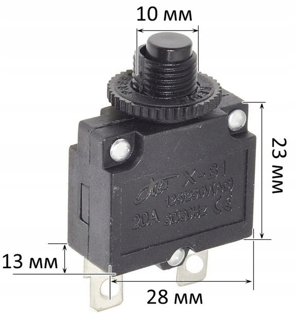 Przekaźnik termiczny 20A 28×23 mm, klawisza: 10 mm (kn237)