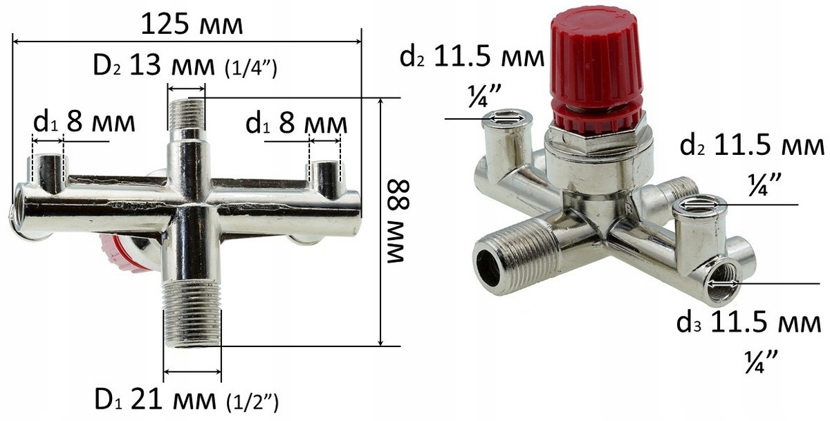- Funkcja: Regulator ciśnienia i rozdzielacz