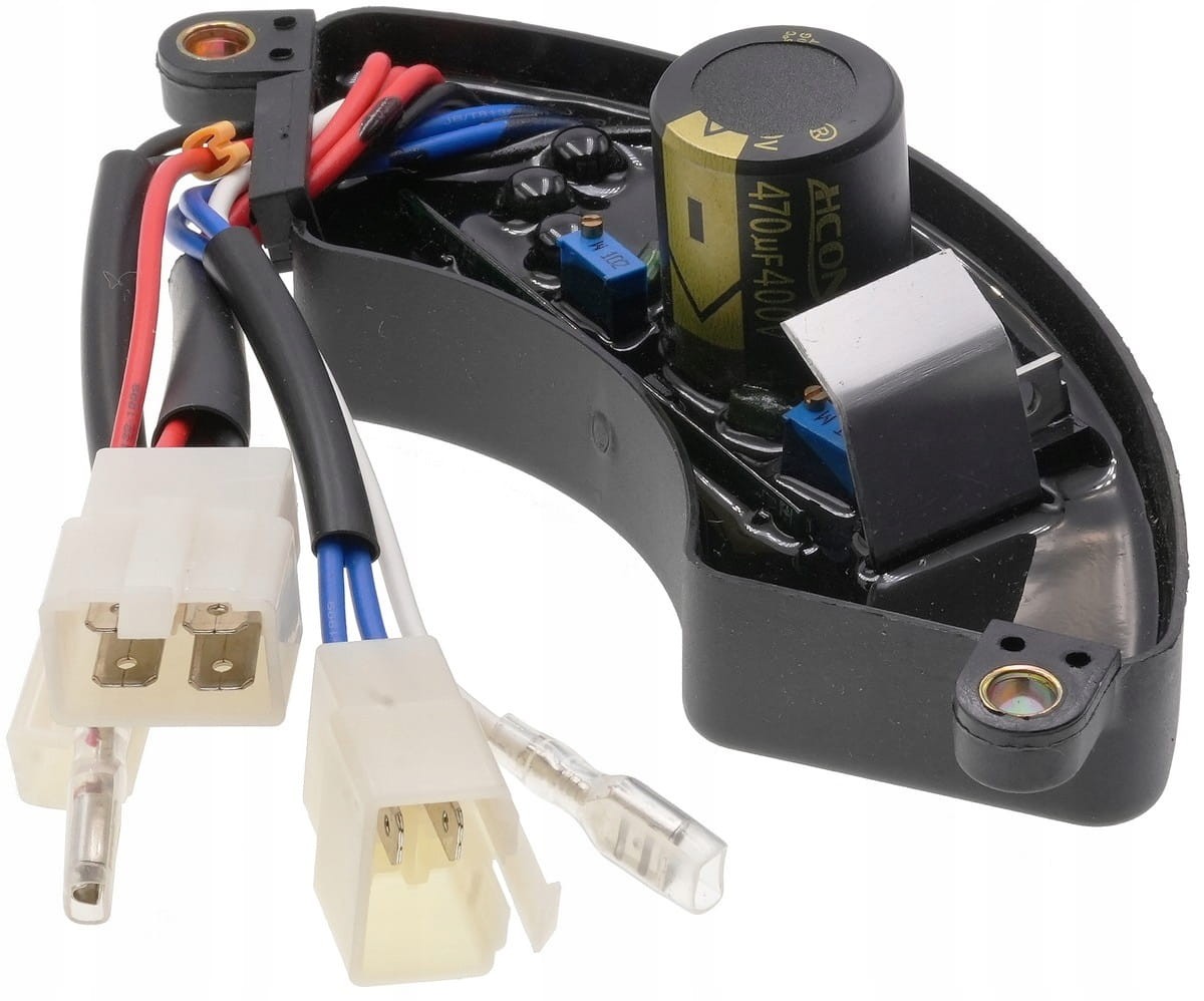 Cyfrowy regulator automatyczny napięcia (AVR), model HJ.3-8KW3P18-X4 (ZN), zaprojektowany do trójfazowych generatorów o mocy od 3 do 8 kW. Utrzymuje stabilne napięcie wyjściowe, chroniąc podłączone urządzenia przed skokami i spadkami prądu. Posiada standardowy rozstaw montażowy 141 mm i umożliwia łatwą instalację dzięki trzem wtyczkom i dwóm przewodom.