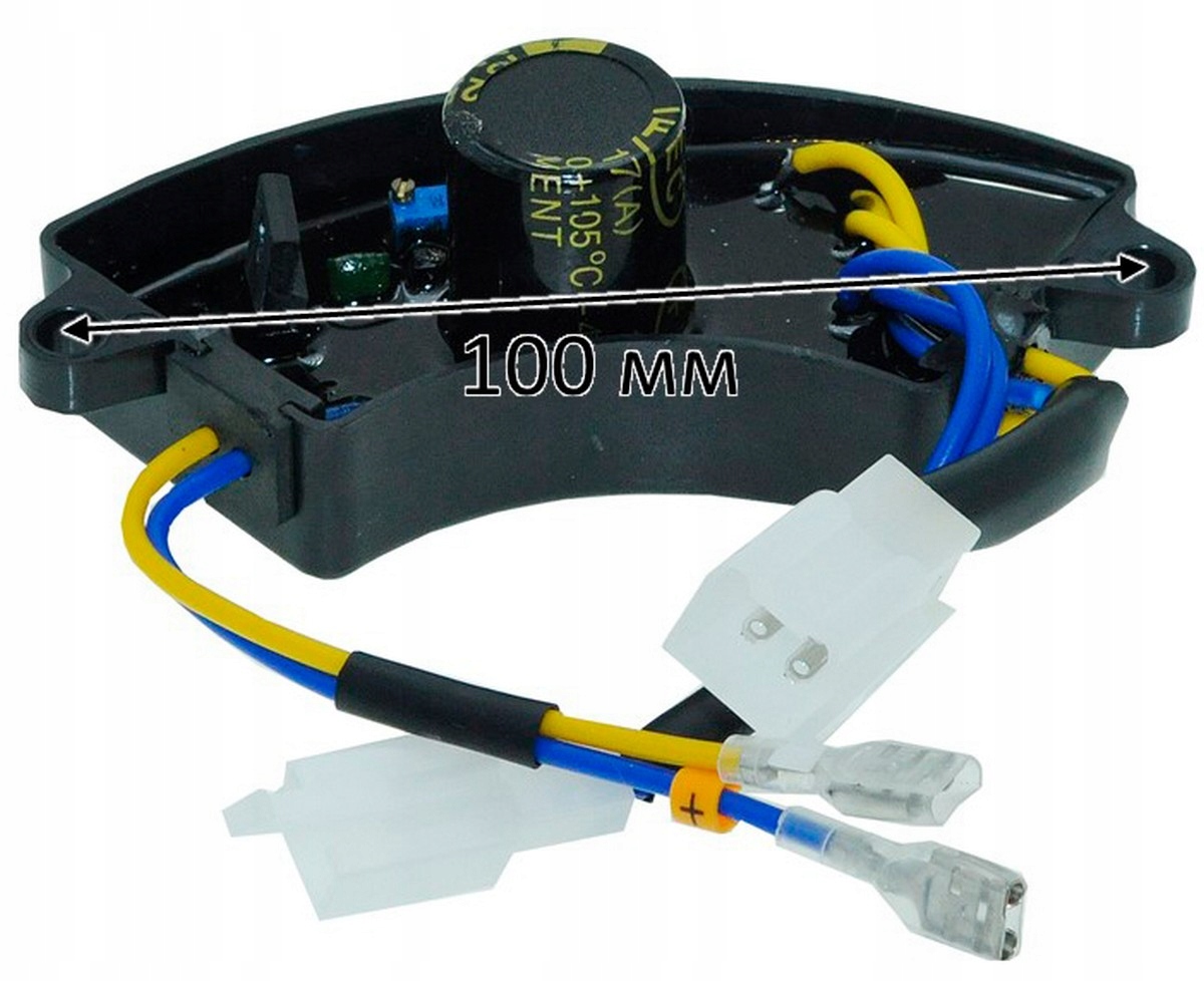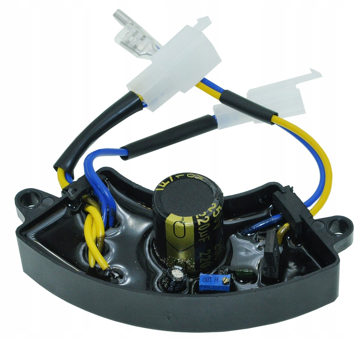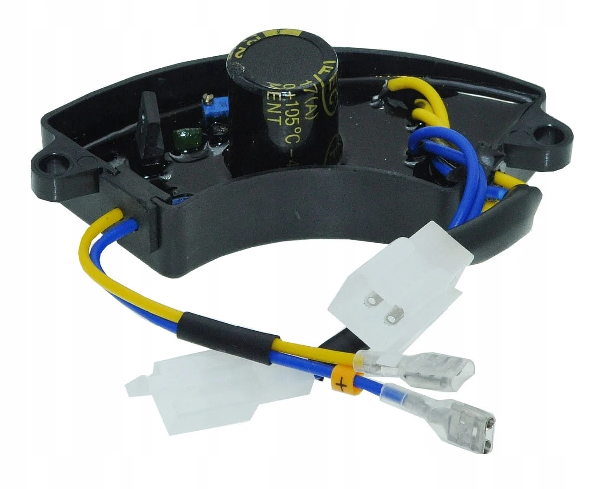 AVR (Automatic Voltage Regulator) — automatyczny regulator napięcia przeznaczony do agregatów prądotwórczych 168F i 170F. Urządzenie pracuje przy napięciu 380 V, z kondensatorem 220 µF / 250 V. Odpowiada za stabilizację napięcia wyjściowego, co chroni odbiorniki przed skokami i spadkami napięcia. Idealny jako część zamienna w agregatach prądotwórczych 2,5 kW.