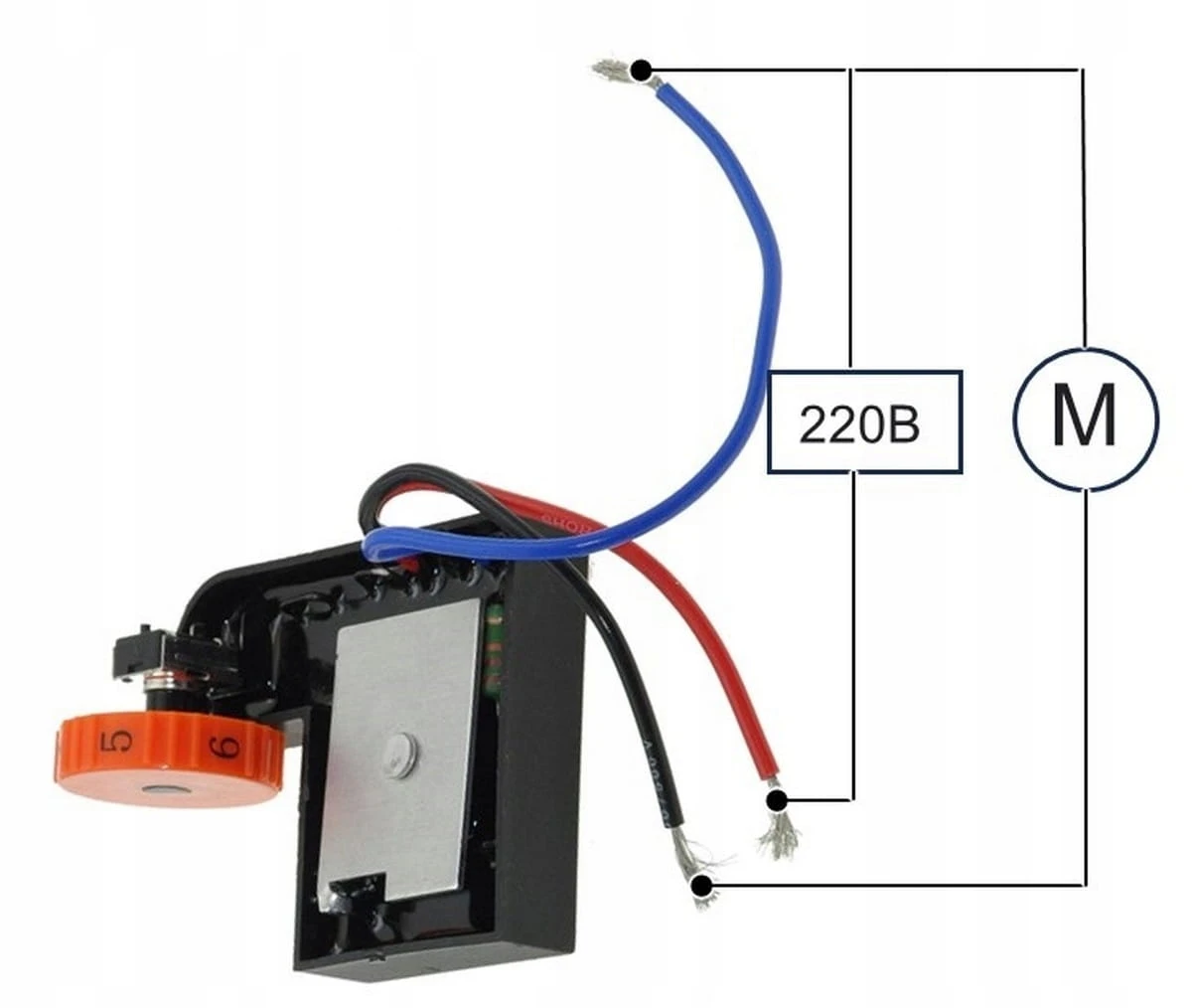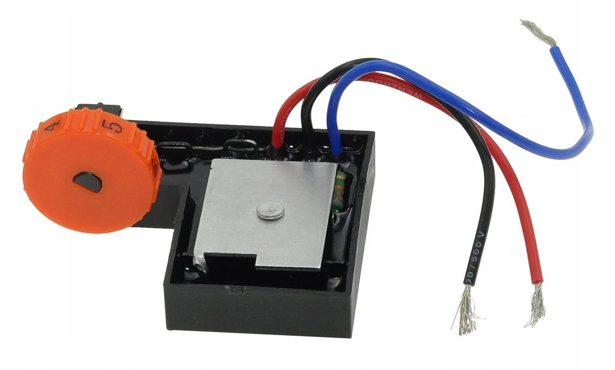 Regulator prędkości obrotowej przeznaczony dla polerek i szlifierek DWT 180 VS. Posiada podstawę 61×36 mm oraz trzy przewody podłączeniowe. Konstrukcja bez burta pozwala na łatwiejszą integrację w obudowie urządzenia, bez konieczności modyfikacji paneli bocznych.