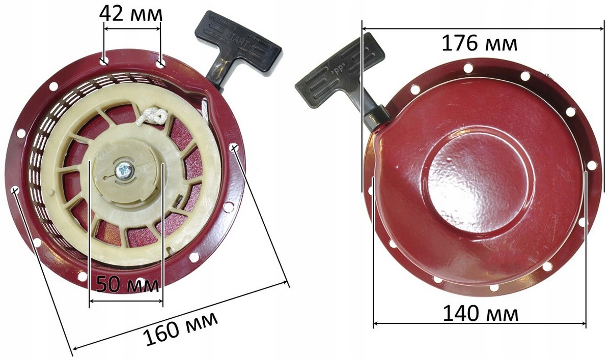 Rozrusznik ręczny (recoil) do agregatów prądotwórczych i motobloków z silnikami 168F oraz 2900H. Średnica montażowa wynosi Ø174 mm, posiada 11 otworów montażowych z rozstawem osi 43 mm. Produkt wykonany z trwałych materiałów, zapewnia sprawny i niezawodny rozruch nawet przy intensywnym użytkowaniu.