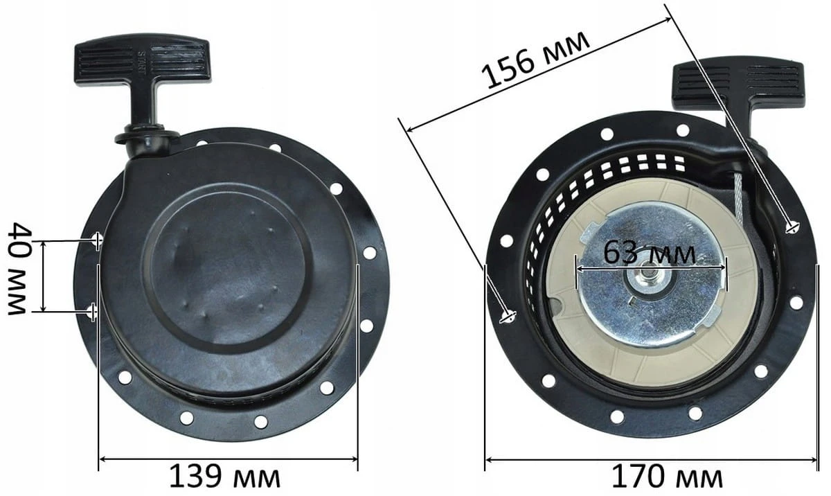 Rozrusznik przeznaczony do silników diesla 170F (4 KM) stosowanych w agregatach prądotwórczych. Model mały i głęboki, wyposażony w 12 otworów montażowych, zapewnia niezawodny i szybki rozruch jednostki. Wykonany z trwałych materiałów, odpornych na wysoką temperaturę i intensywne warunki pracy.