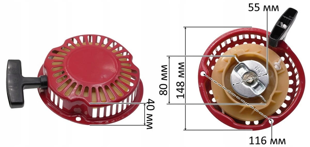Wytrzymały rozrusznik ręczny (szarpak) przeznaczony do silników 152F oraz 154F stosowanych w generatorach i motopompach o mocy 1–1,5 kW (2,5 KM). Wykonany z trwałych materiałów (plastik + metal), gwarantuje niezawodne uruchamianie jednostki napędowej. Dzięki precyzyjnym wymiarom idealnie dopasowuje się do silnika i zapewnia wygodną obsługę w każdych warunkach.