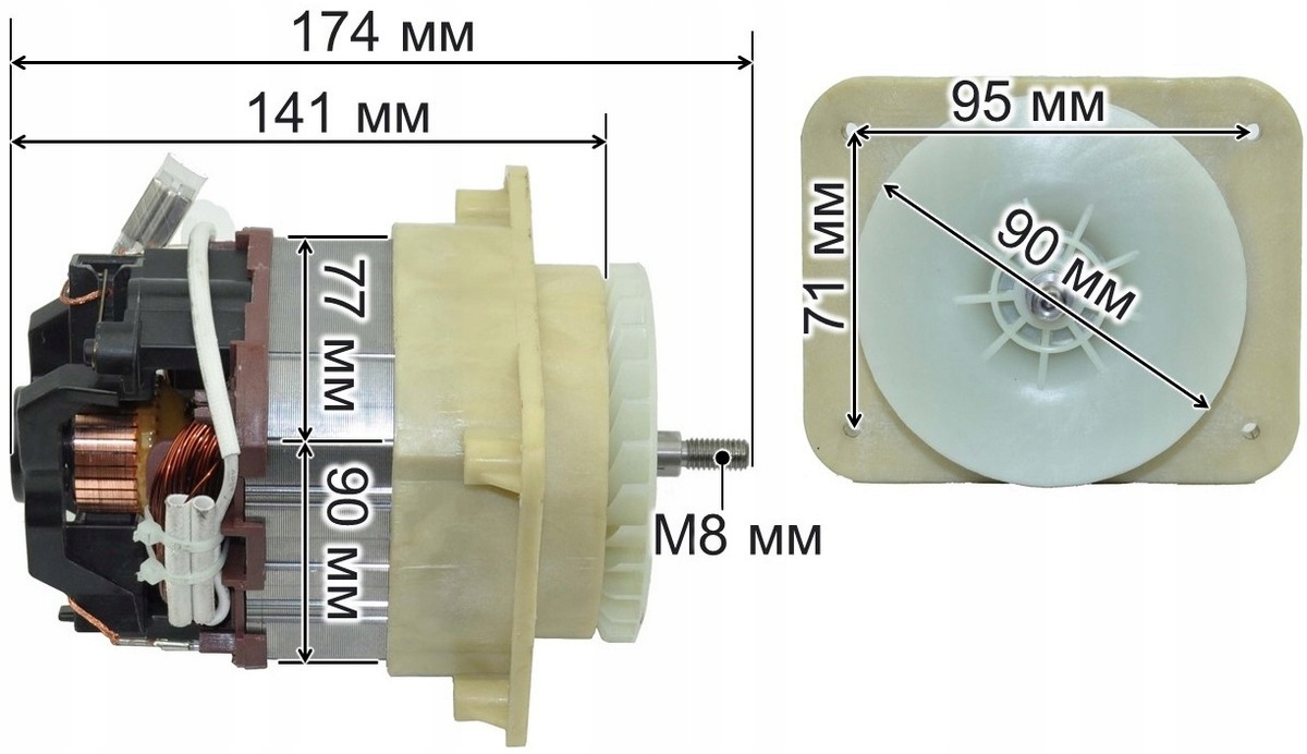 Silnik elektryczny do kosiarki 3.82 SE 412480 moc 1400W Średnica wału 8mm