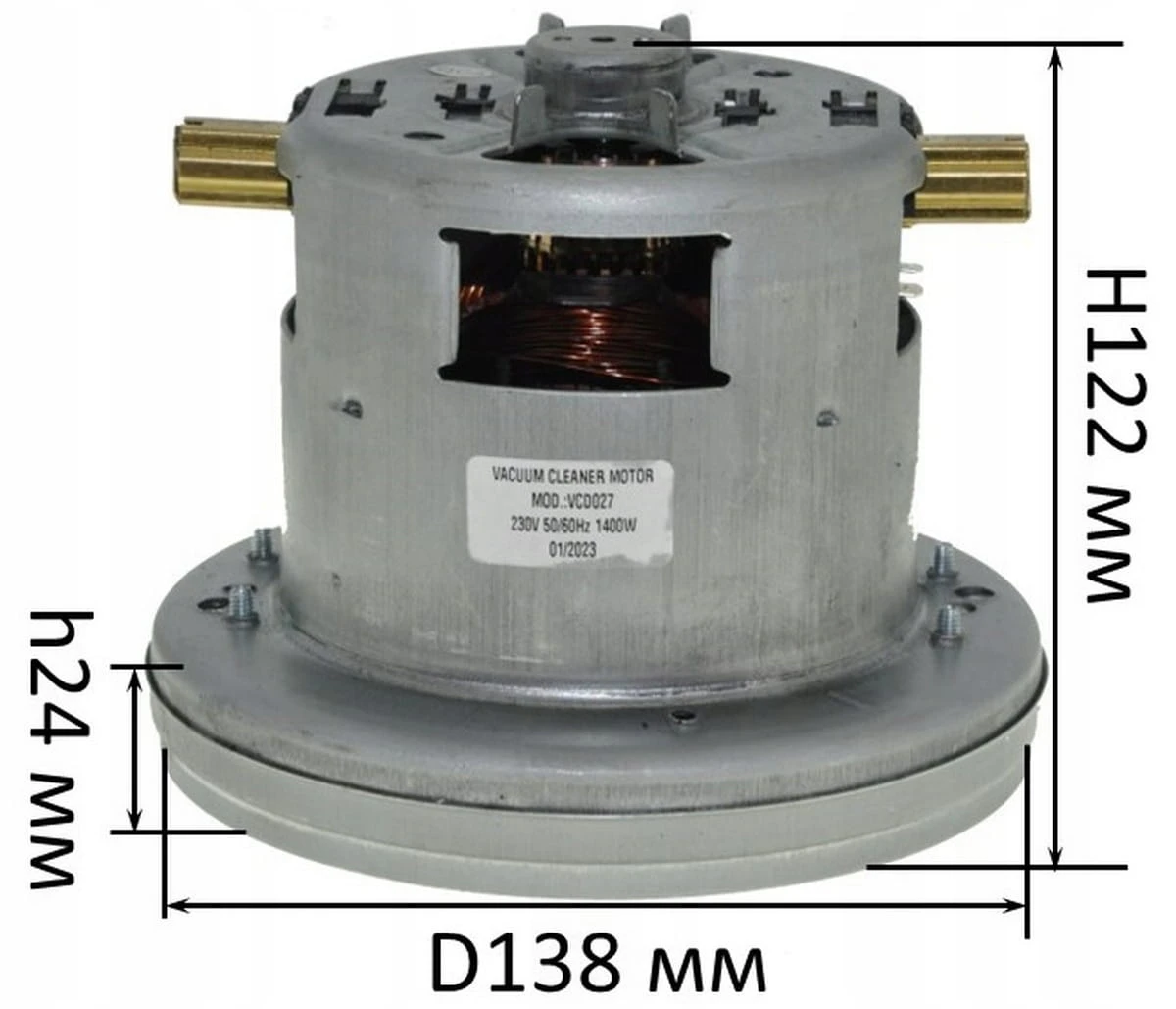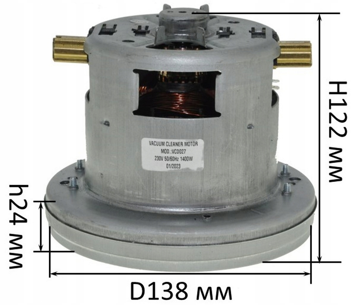 ✔ Wysoka moc: 1400W zapewnia efektywne działanie odkurzacza. ✔ Standardowe wymiary: Średnica 138 mm i wysokość 120 mm umożliwiają łatwą instalację w wielu modelach odkurzaczy. ✔ Trwałość: Wykonany z wysokiej jakości materiałów, gwarantuje długą żywotność.