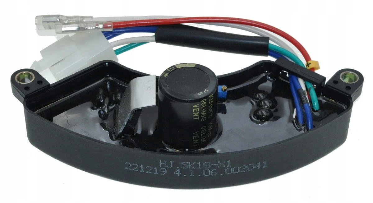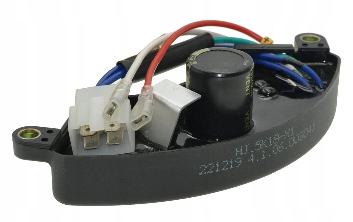 Regulator napięcia AVR przeznaczony do jednofazowych agregatów prądotwórczych z silnikiem 188F i mocą około 5 kW. Utrzymuje prawidłowe napięcie wyjściowe, zapobiegając skokom i spadkom napięcia, co zwiększa bezpieczeństwo i trwałość odbiorników.