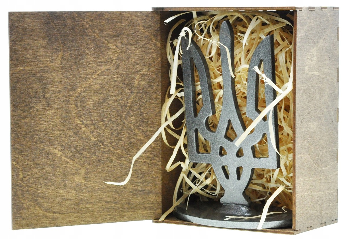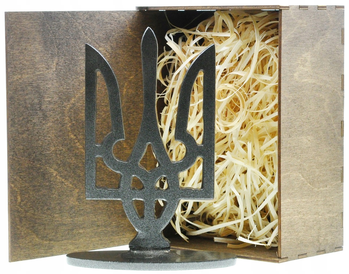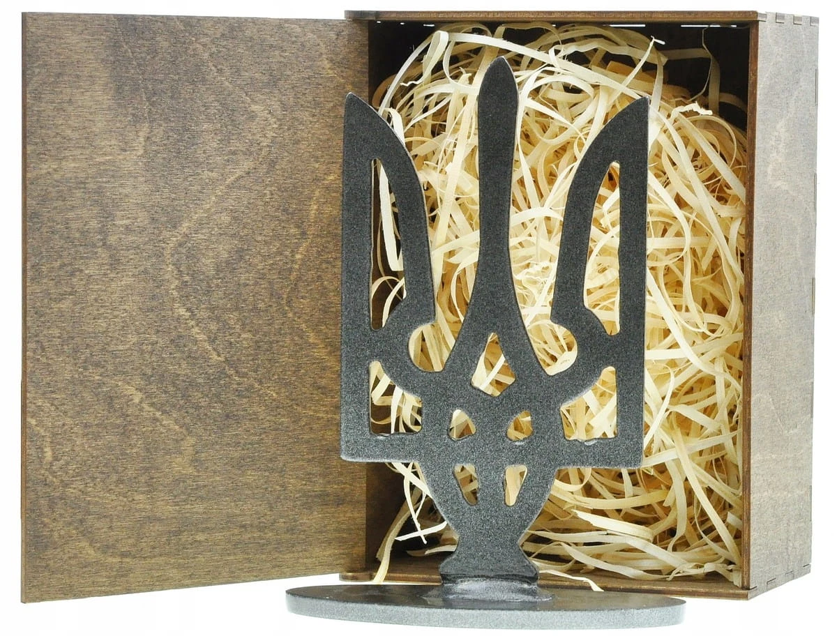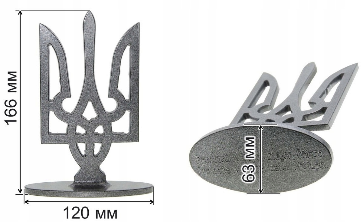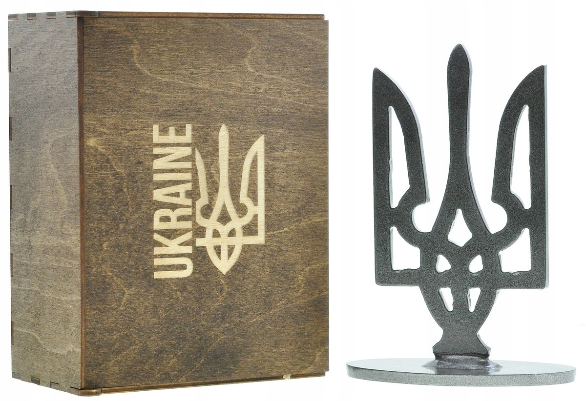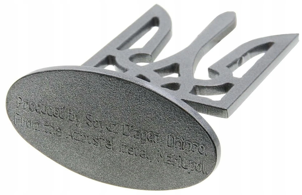 Tryzub Ukrainy ze stali Azowstalu – symbol siły narodu, wysokość 166 mm