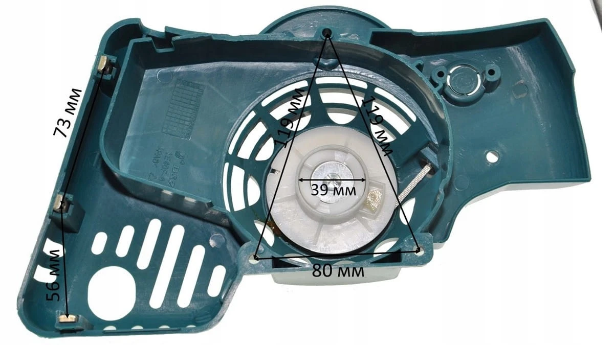 Ręczny starter (rozrusznik szarpak) przeznaczony do silników w kosiarkach Castel Garden i Klever z oznaczeniem MЦ. Umożliwia uruchomienie silnika bez użycia elektrycznego rozrusznika. Idealny do domowych i półprofesjonalnych zastosowań ogrodowych.