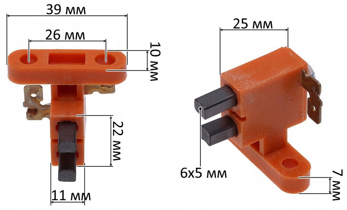 - Wymiary uchwytu szczotek: 11 × 22 × 25 mm