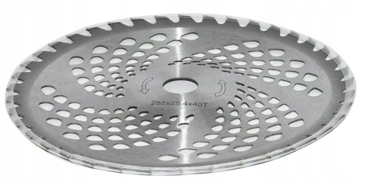 Oferujemy wysokiej jakości dwustronną tarczę do podkaszarki, wyposażoną w 40 zębów z węglików spiekanych. Średnica tarczy wynosi 255 mm, co zapewnia efektywne koszenie zarówno trawy, jak i drobnych krzewów. Dzięki zastosowaniu węglikowych ostrzy tarcza cechuje się wyjątkową trwałością i odpornością na zużycie.