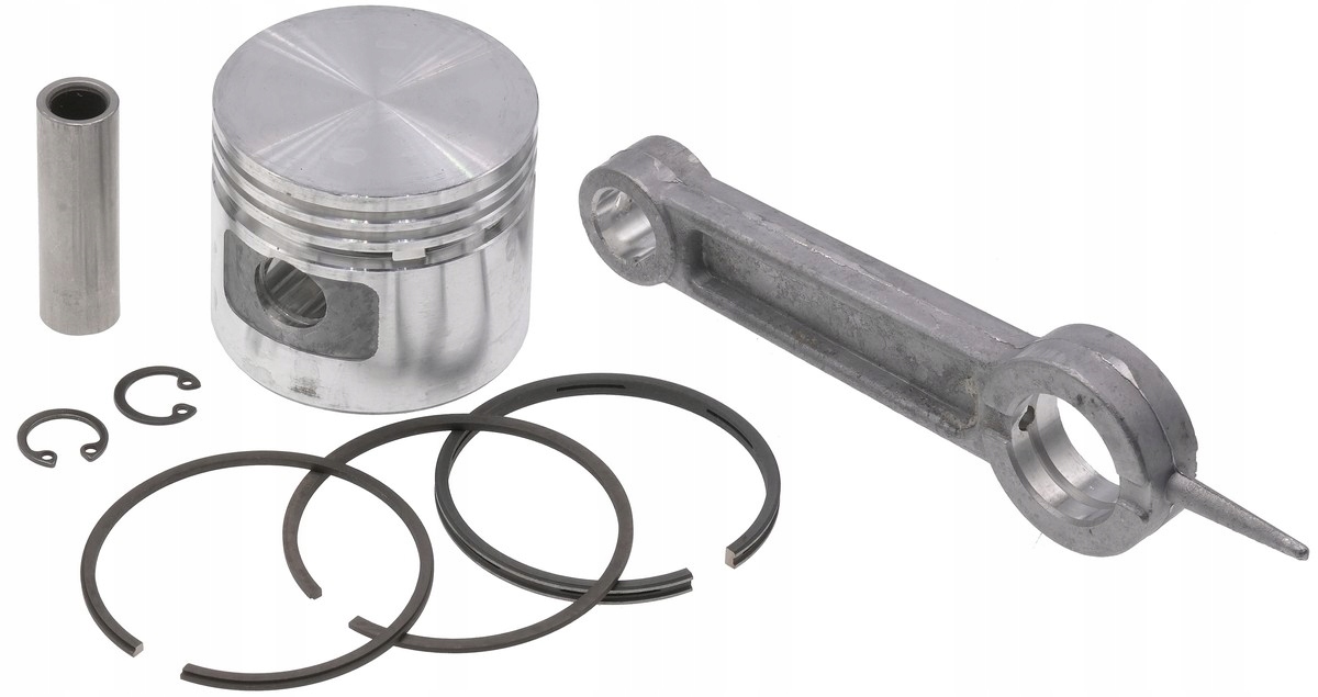 - Gotowy komplet — zawiera tłok, pierścienie sprężynowe i palec tłokowy, gotowy do instalacji bez dodatkowych prac