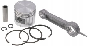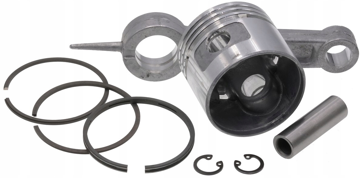 - Komplet zawiera: tłok, pierścienie sprężynowe, pierścień odprowadzający olej, palec, zabezpieczenia