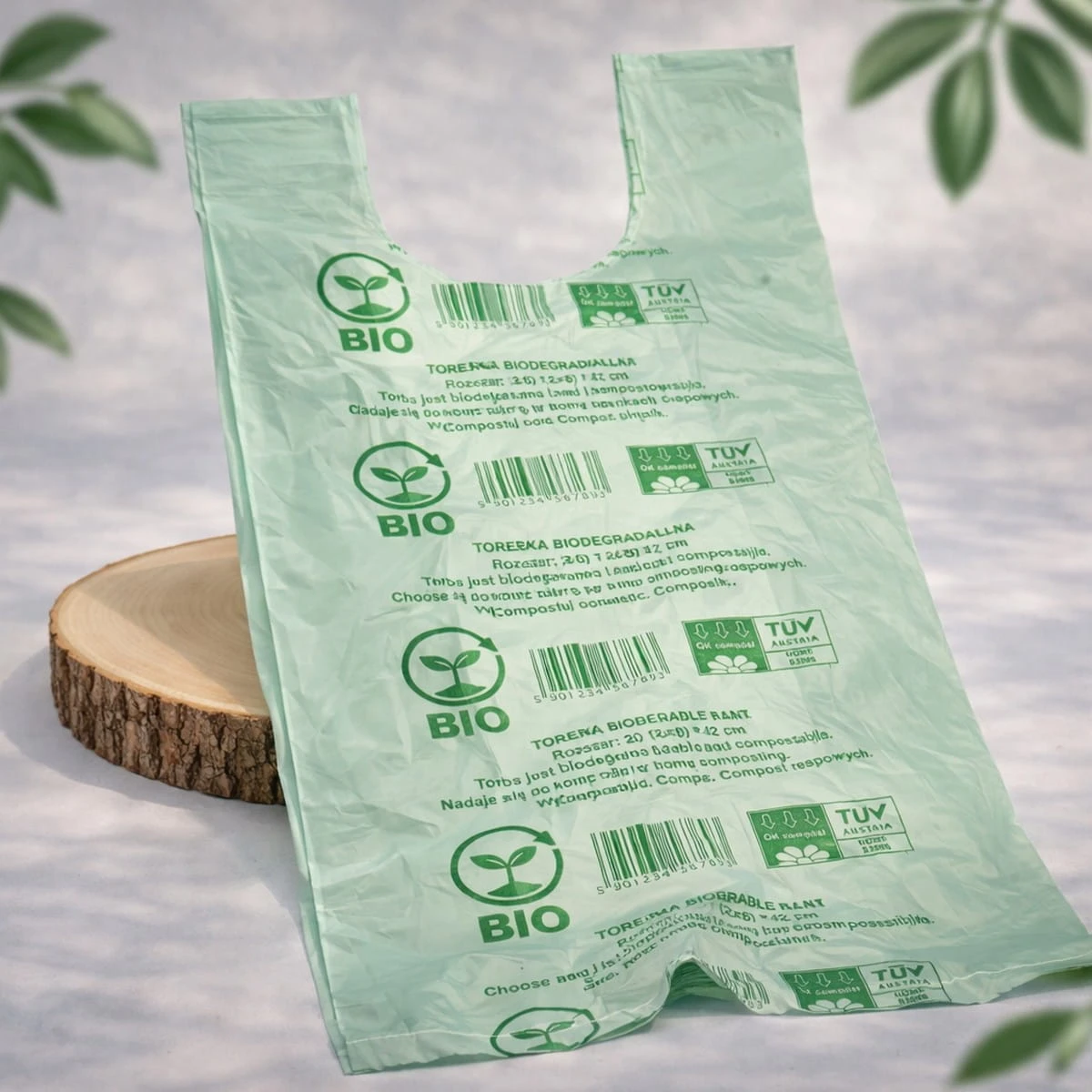 Torba wykonana z materiału biodegradowalnego, który ulega naturalnemu rozkładowi. To doskonała alternatywa dla tradycyjnych toreb foliowych.