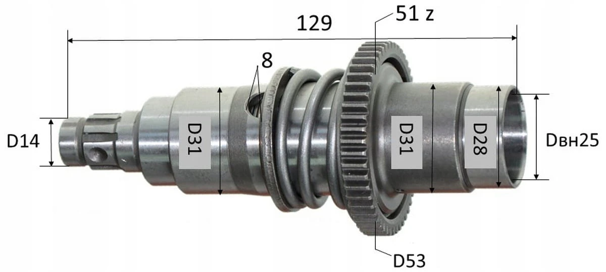 - Długość całkowita: 129 mm