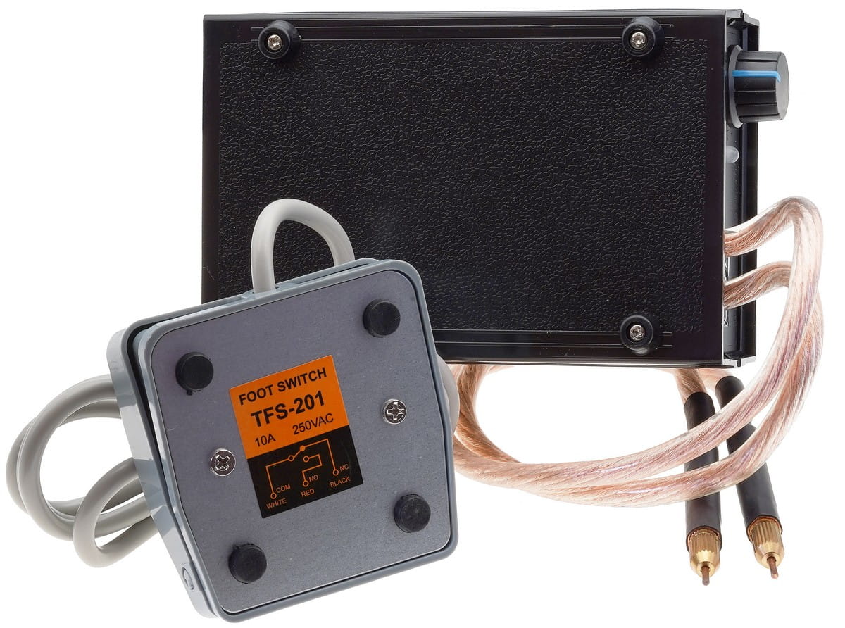 Typ pedału: dwa pióra lutownicze umieszczone na kawałku niklu, krok na urządzeniu nie wyzwalanym, czerwone światło miga szybko 3 razy, prąd elektryczny raz, całkowicie spawanie.