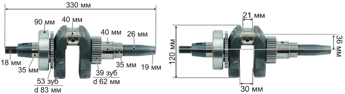 Wał korbowy silnika generatora / glebogryzarki 186F stożek L330 mm
